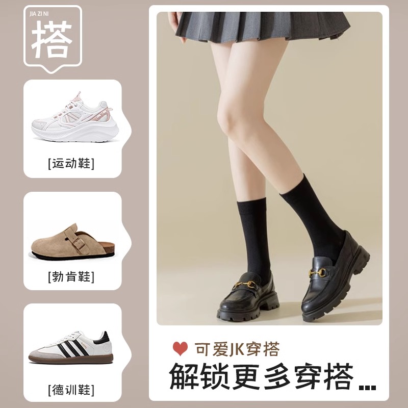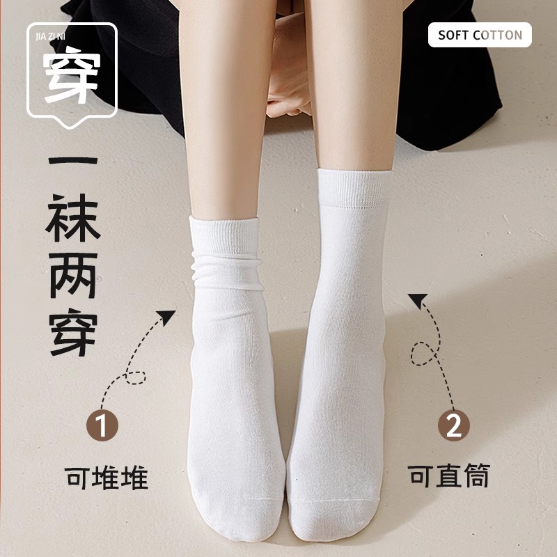 黑色袜子女士春秋款 可爱 纯棉中筒袜堆堆袜月子袜无骨长袜配小皮鞋