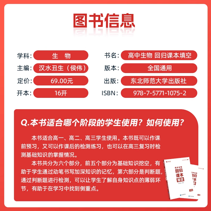 育甲2025新版 汉水丑生高中生物回归课本填空汉水丑生高中生物基础知识回归教材生物知识点大全高中生物专题训练全国通用