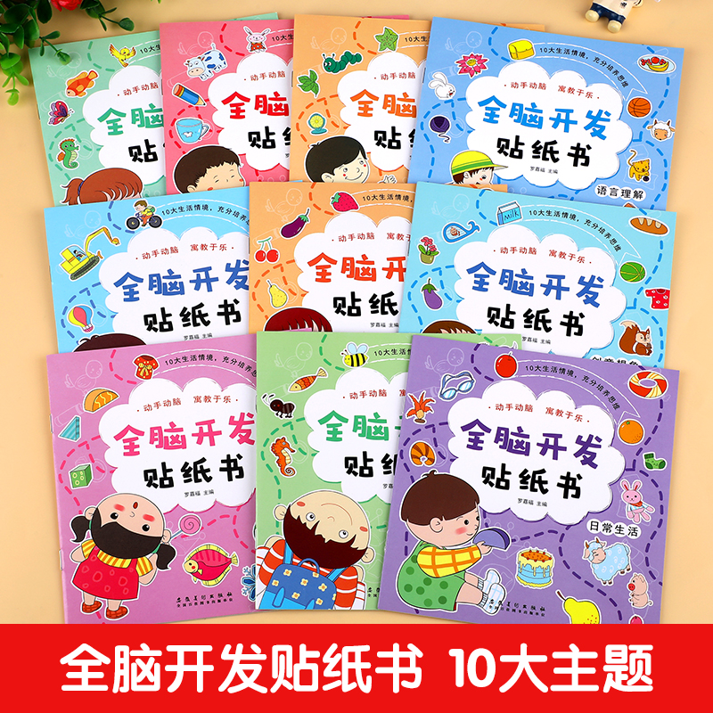 5岁 全脑开发贴纸书全套10册 贴贴画专注力儿童贴纸书3到6岁以上左右脑开发思维训练益智动手动脑粘贴画三岁宝宝书籍绘本幼儿园2