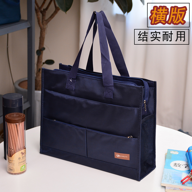 青佳男士 手提包学生补习袋大容量拎书袋初中高中补课包公文包 横款