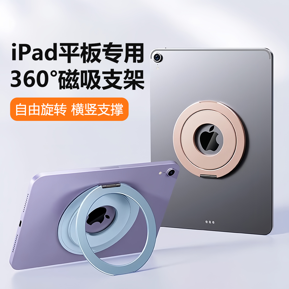 适用苹果华为小米平板电脑指环扣支架ipadmini金属环360旋转matepad便携吸附超薄车载背面桌面折叠磁吸背贴片