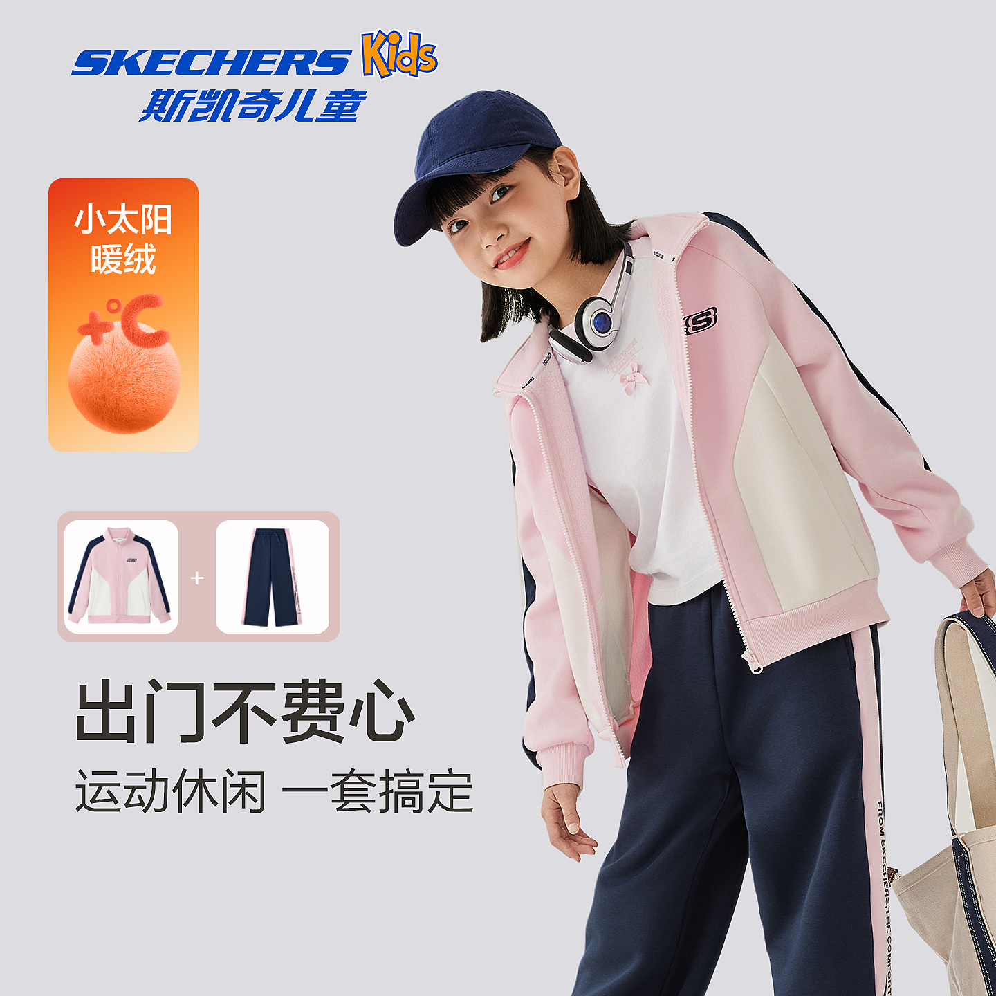 百搭休闲运动童装 男女童时尚 套装 Skechers斯凯奇儿童加绒外套长裤