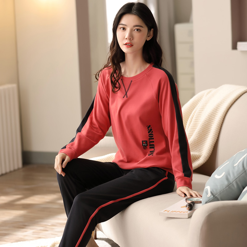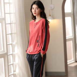 套头纯棉可外穿秋冬季 全棉睡衣女春秋季 长裤 长袖 家居服 纯棉春秋款