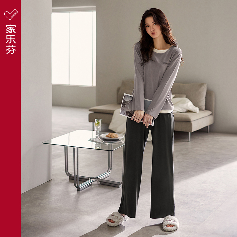 家居服套装 卡之恋长袖 纯棉加厚带胸垫冬睡裤 2025新款 睡衣女春秋季