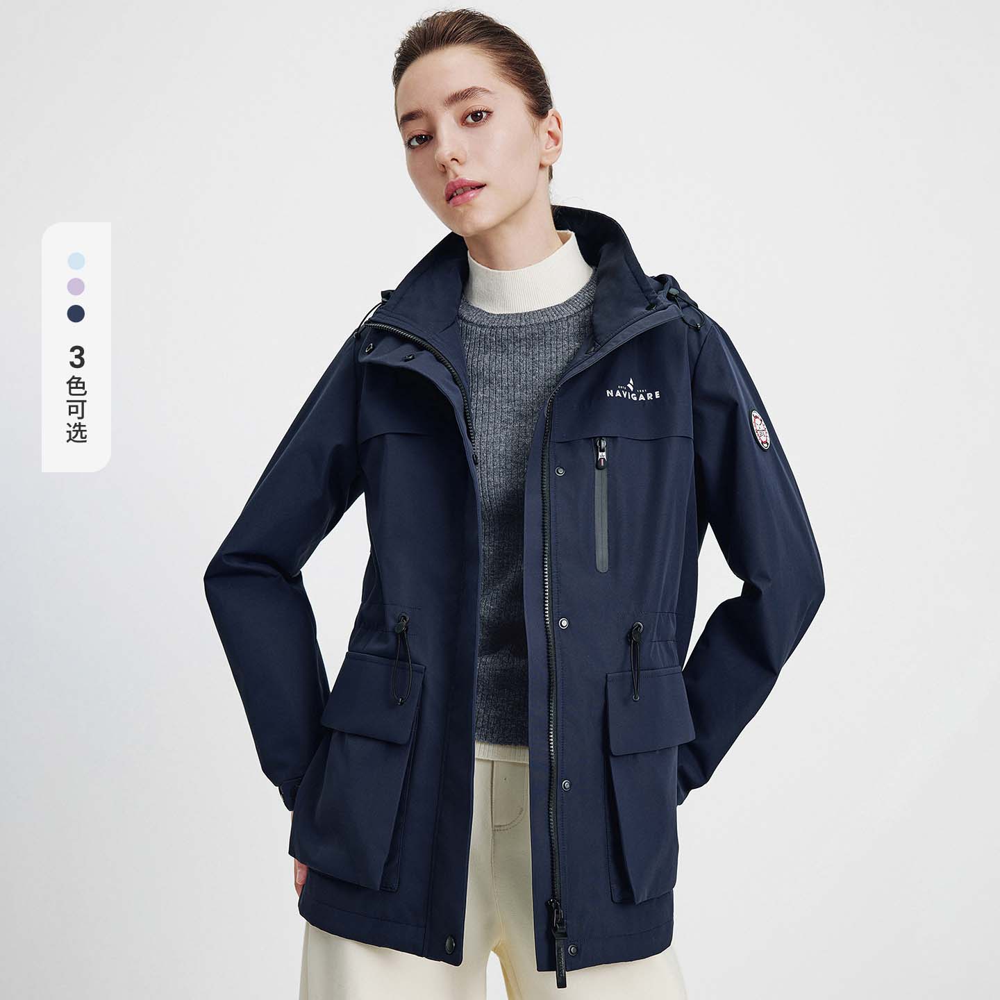 乔丹梭织风衣女2025秋季 女士防风户外骑行垂钓连帽夹克外套女 新款
