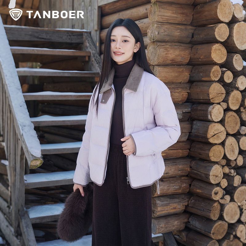 雪中飞2025冬新款 女短可拆翻领葫芦纹轻薄秋羽绒服温柔百搭小个子