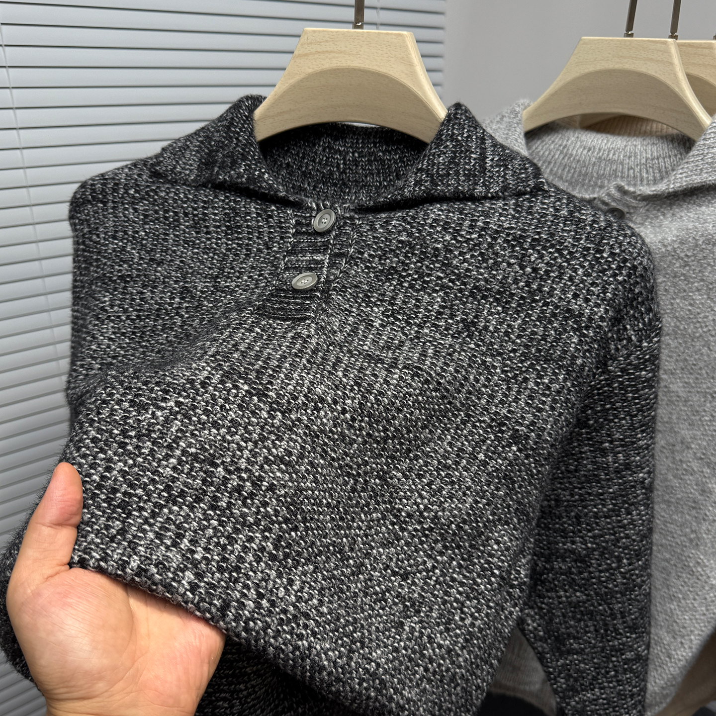 新黑色厚款 25秋季 双领毛衣男 海澜之家轻商务加绒假两件针织衫 HLA