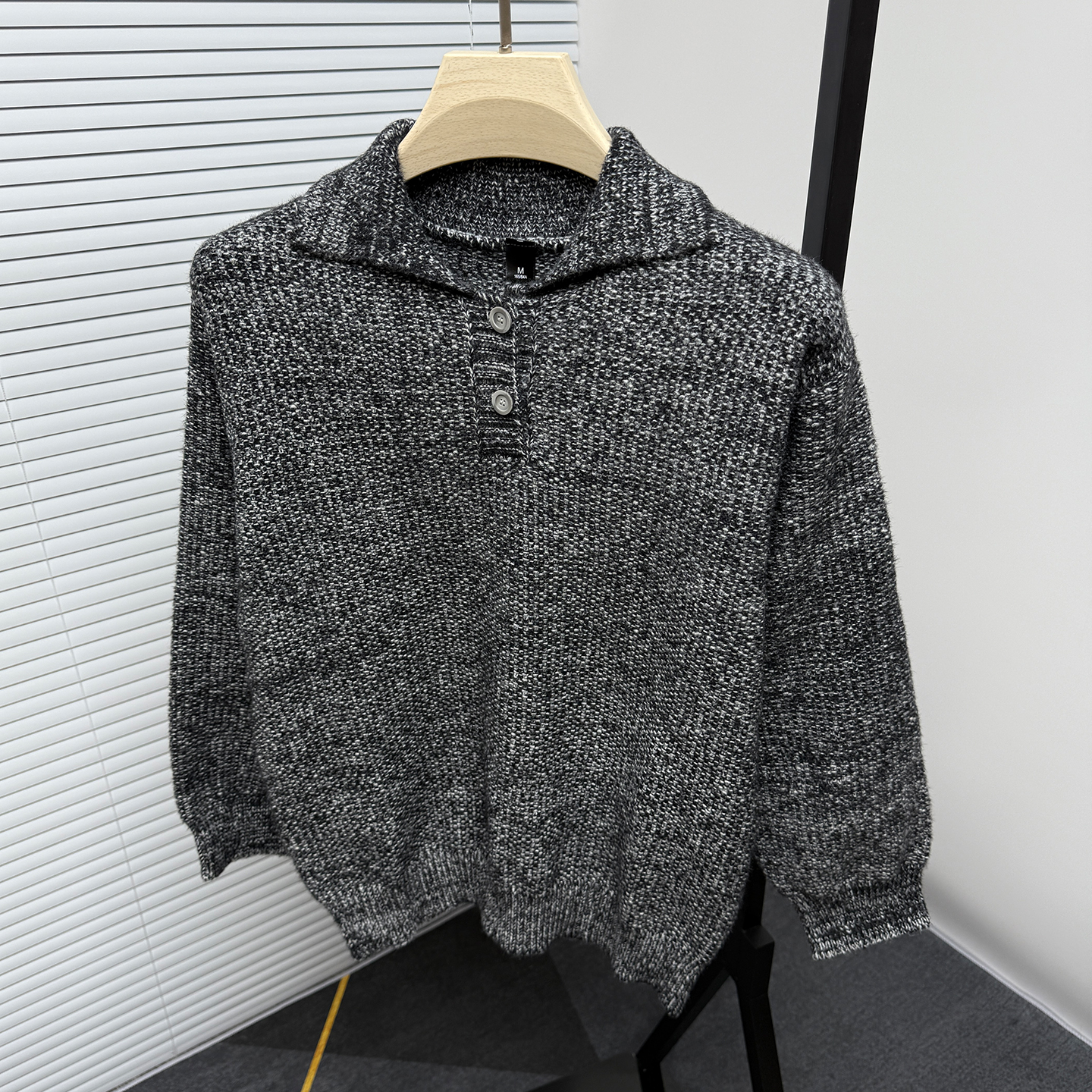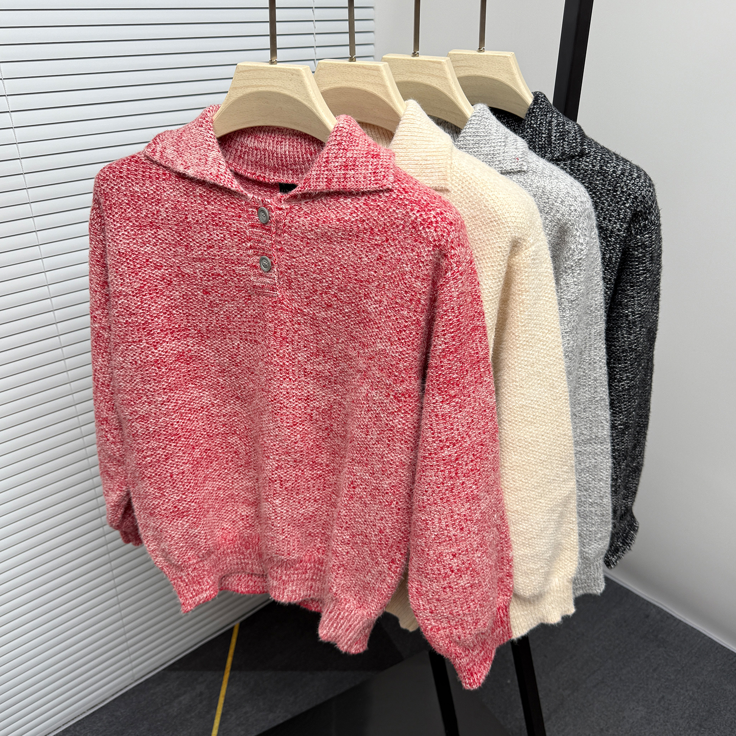 蓝色翻领毛衣 新款 阔色慵懒风灰色针织开衫 外套上衣女2025秋冬季