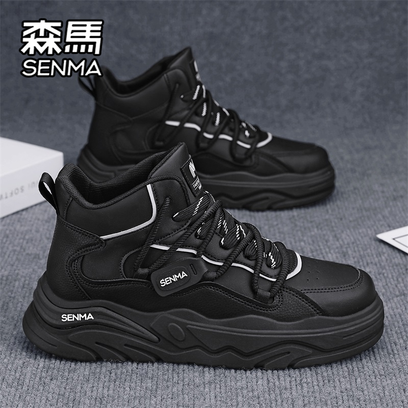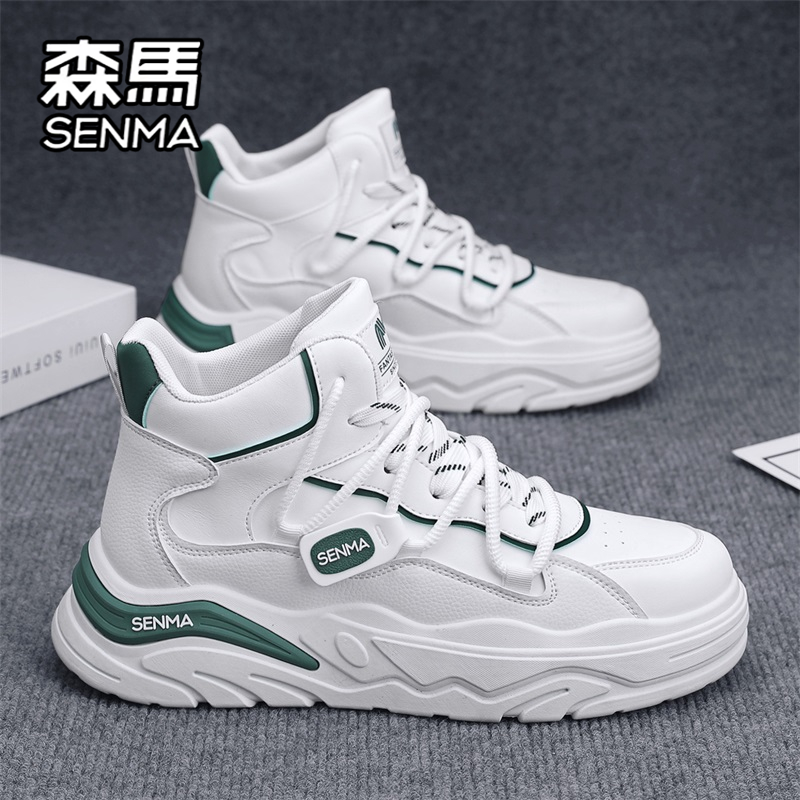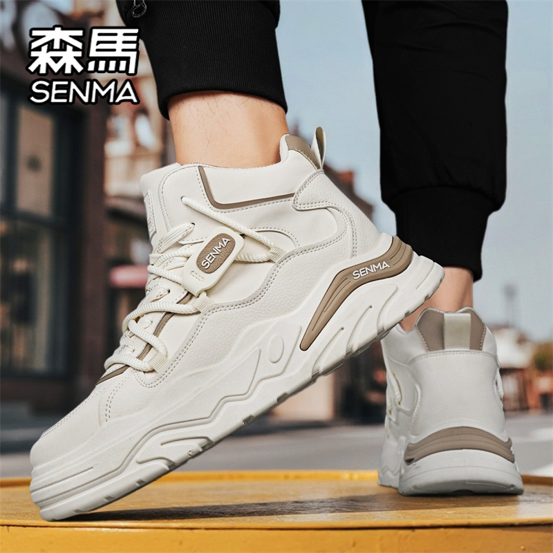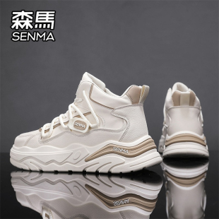 青少年运动厚底增高小白潮鞋 高级感百搭休闲板鞋 秋季 森马高帮男鞋