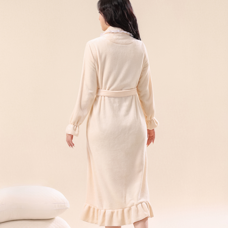 花边浴袍性感珊瑚绒睡衣 大码 洋气秋冬款 睡袍女公主风法兰绒中长款