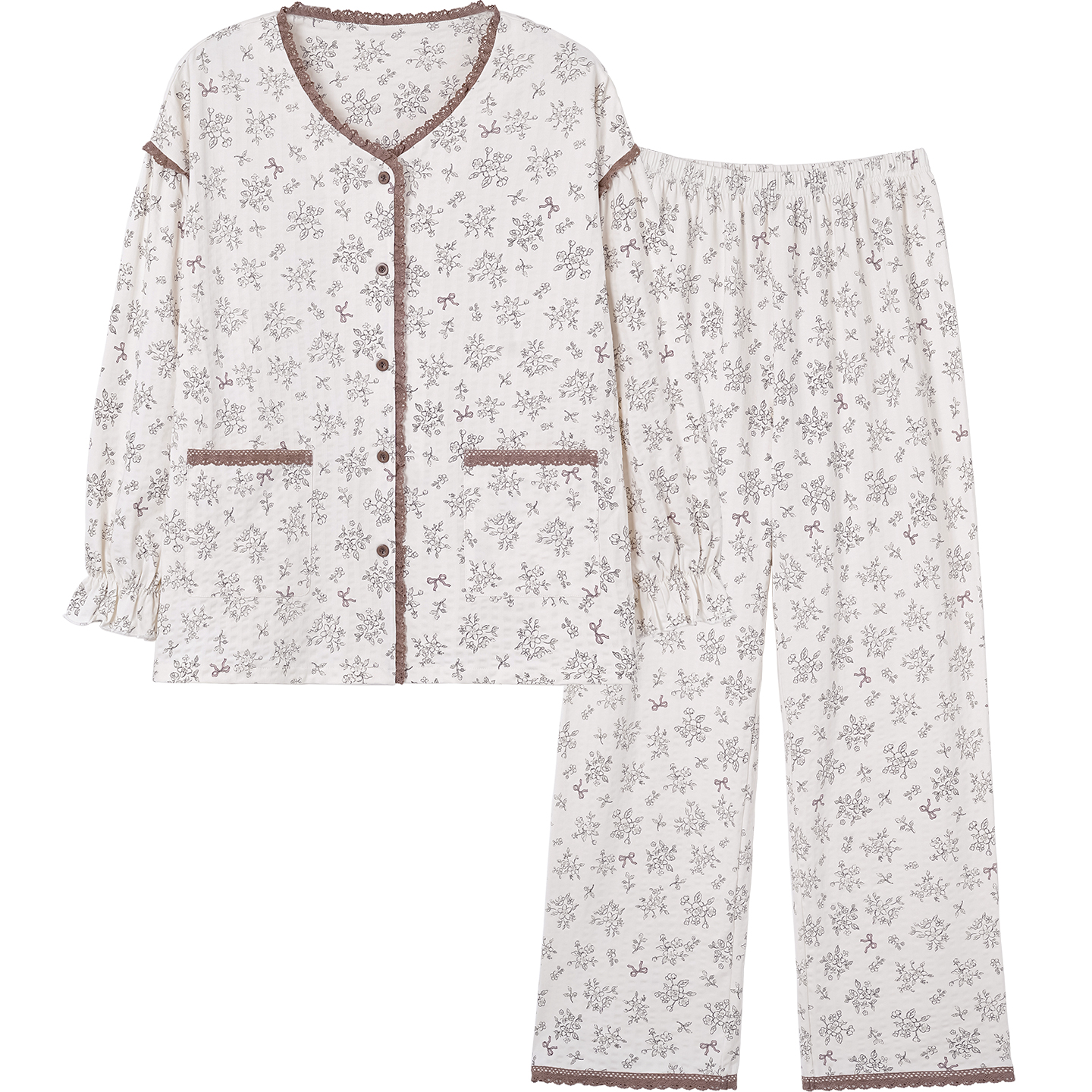长袖 全棉大码 套装 女款 家居服 简约休闲秋季 芬腾春秋睡衣女纯棉开衫