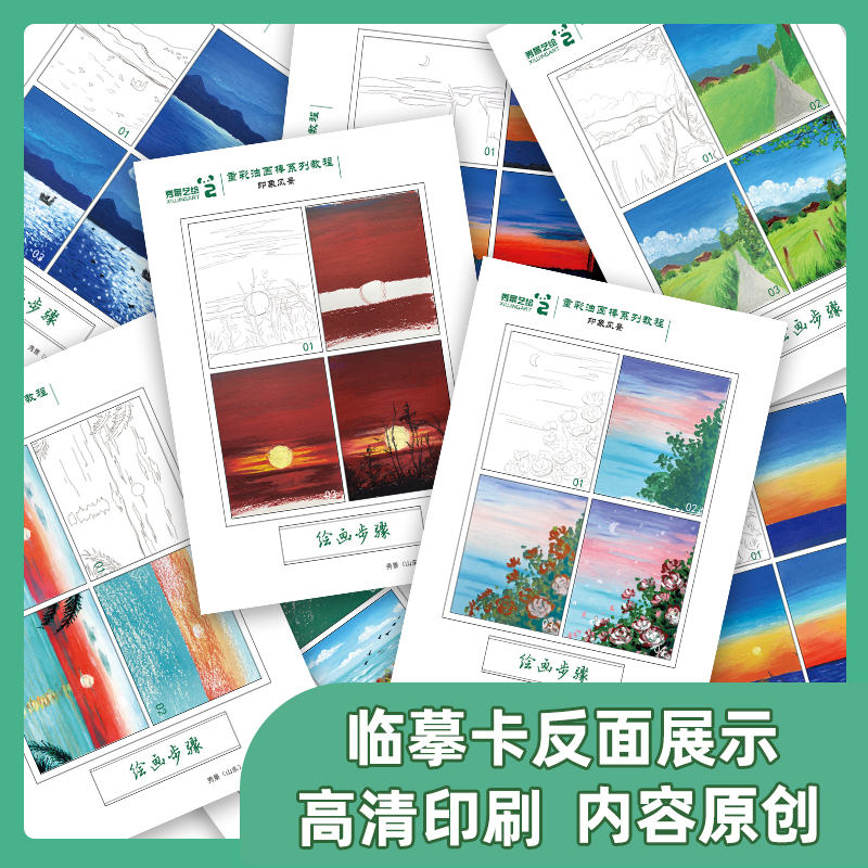 秀景艺绘暮色山野重彩油画棒临摹卡印象风景篇少儿美术创意素描考级画室临摹卡素材