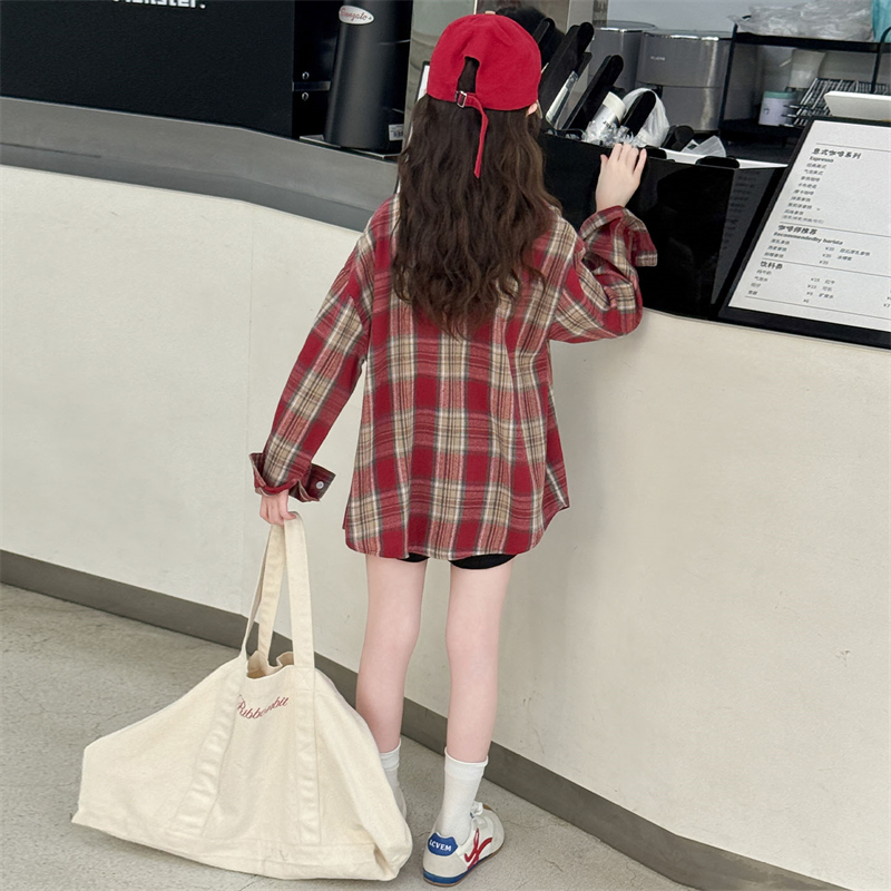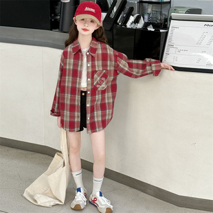 韩版 女童格子衬衫 新款 2025秋季 中大童洋气时髦宽松衬衣外套潮 长袖