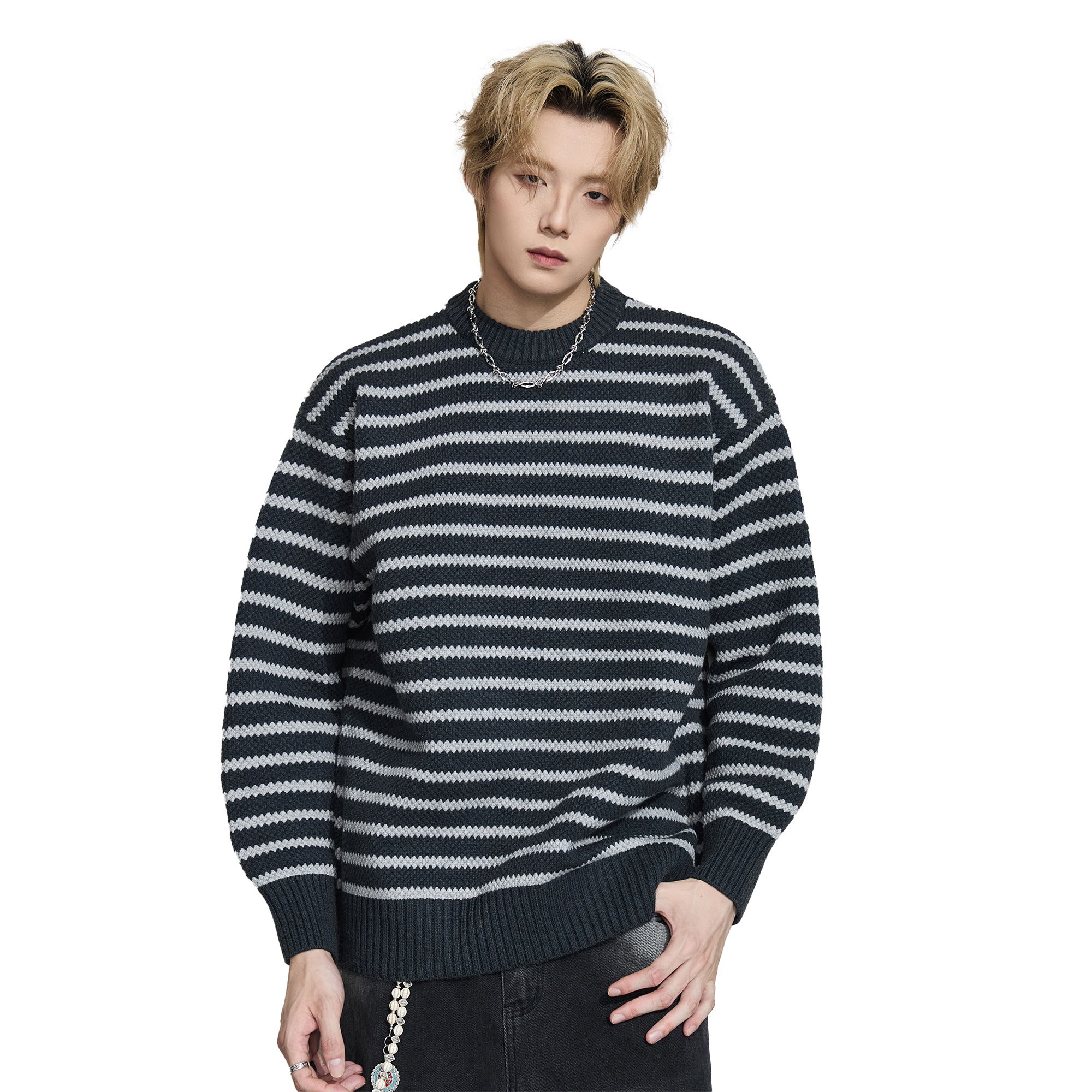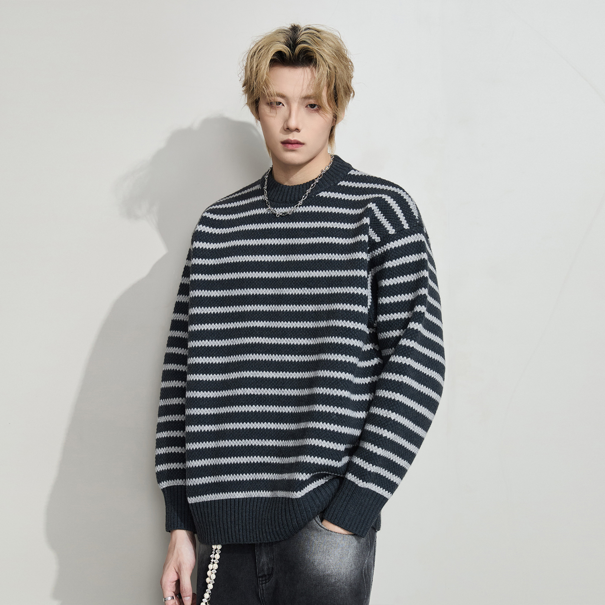百搭外穿拉链线衣外套 慵懒风潮牌宽松针织衫 立领开衫 毛衣男秋冬季