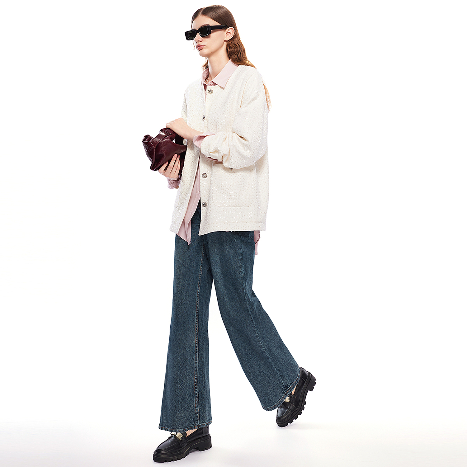日常百搭气质阔腿牛仔裤 DKNY唐可娜儿2025秋季 子复古时尚 裤 女 新款
