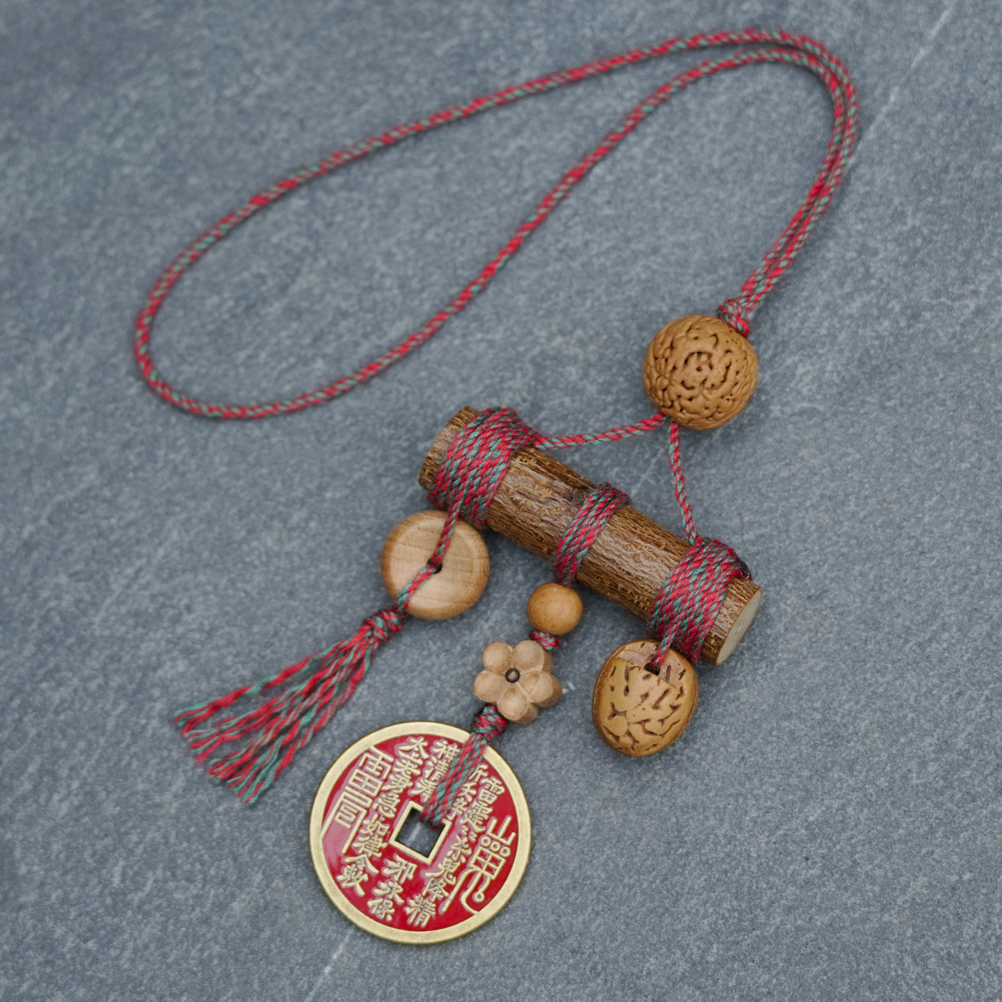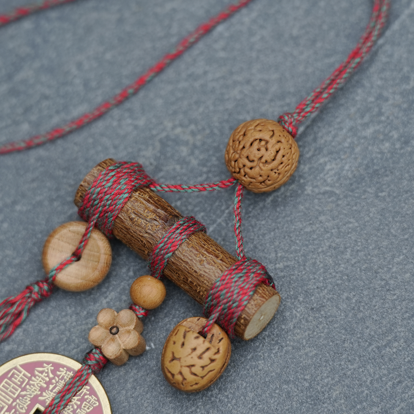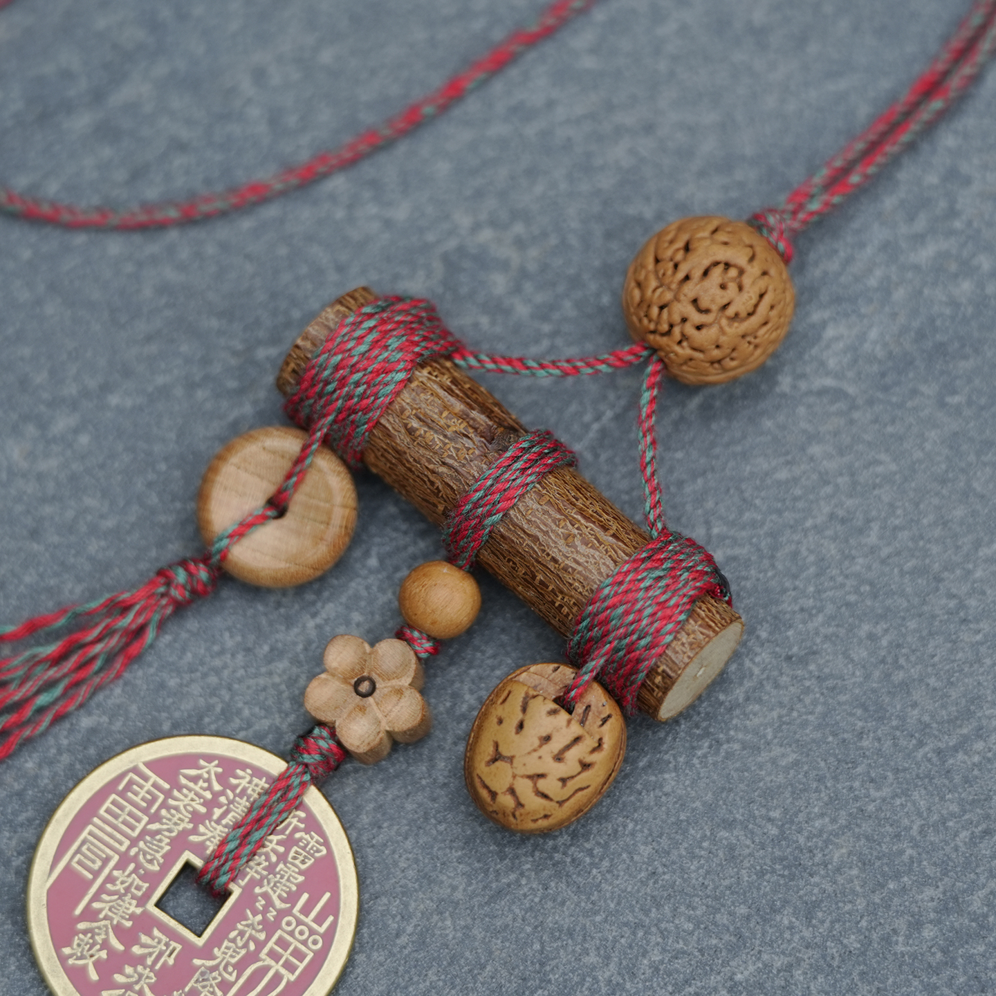 山鬼花钱桃木鲜枝子挂件棉绳野生天然桃核婴儿宝宝随身护外出惊防