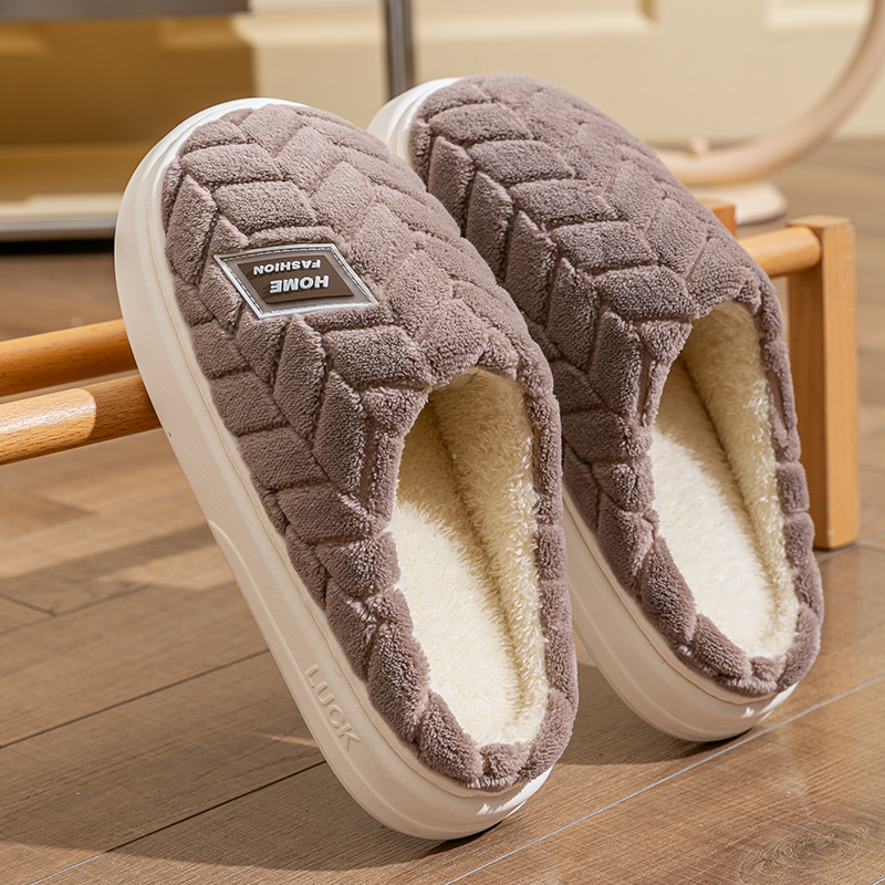 家居保暖厚底防滑2025新款 男士 家用情侣踩屎感女 秋冬季 毛绒棉拖鞋