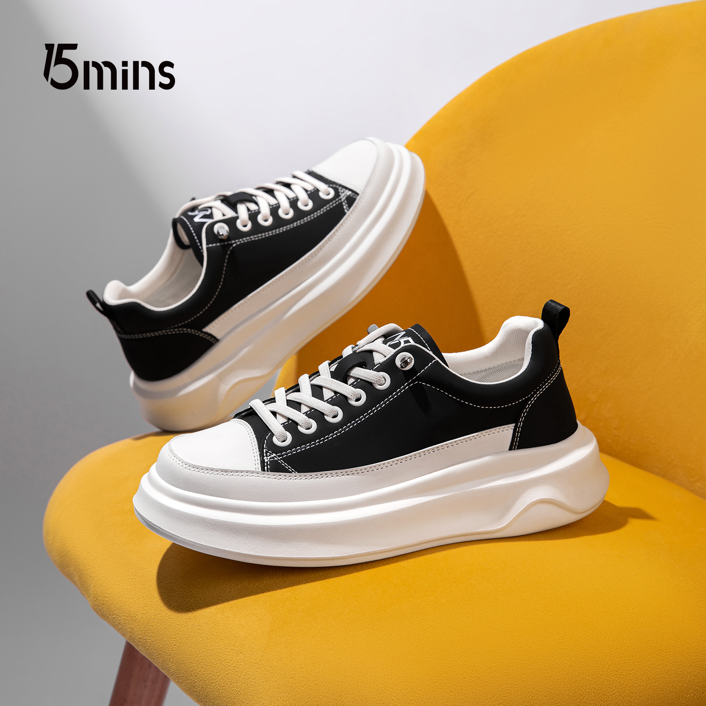 女2025秋季 套脚情侣板鞋 新款 运动休闲鞋 增高男士 15mins厚底小白鞋