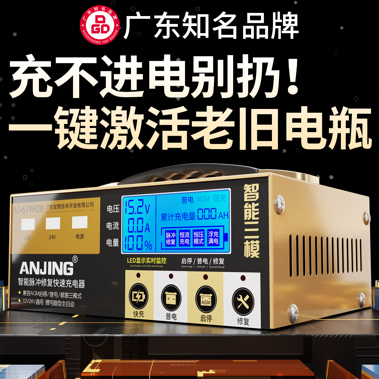 12v24v汽车电瓶充电器铅酸锂电货车蓄电池智能修复纯铜机芯充电机
