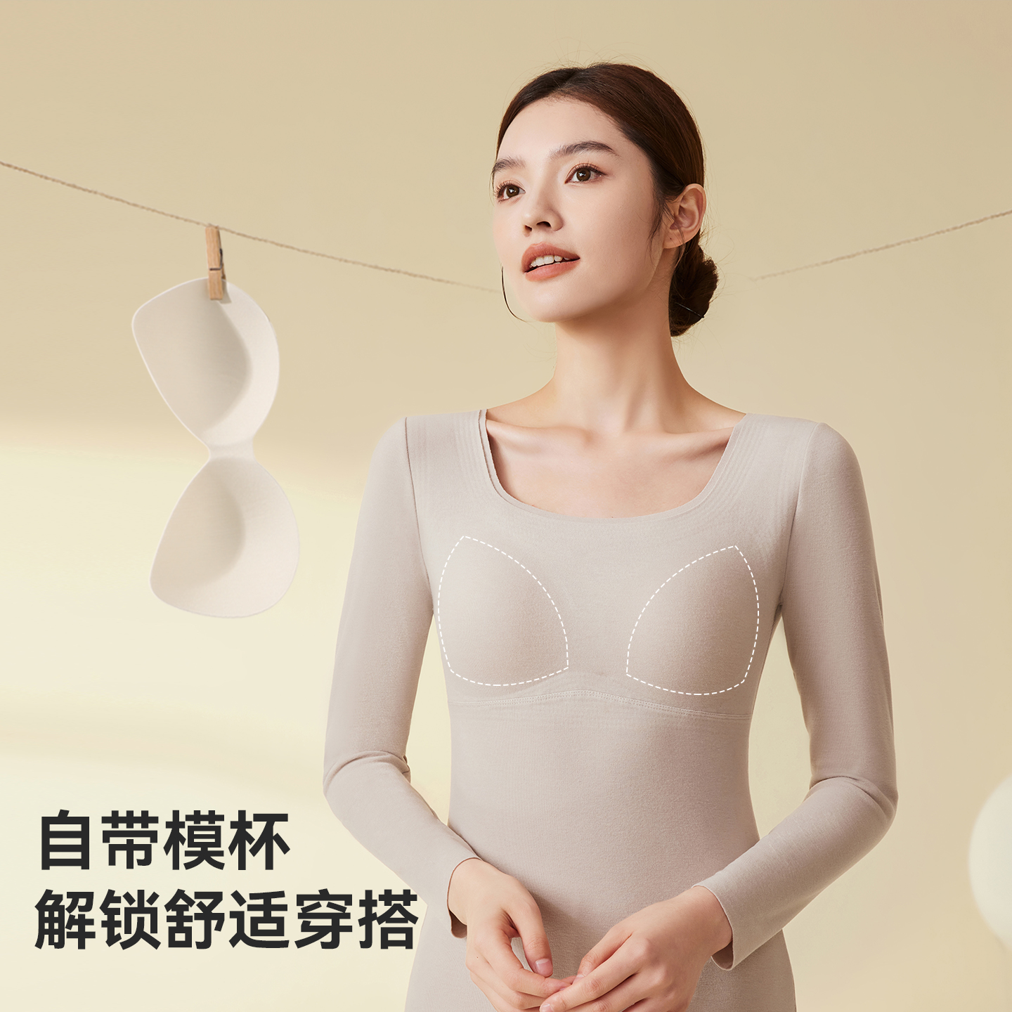草本初色保暖上衣内搭打底女士秋冬长袖 带胸垫可外穿肌底衣打底衫