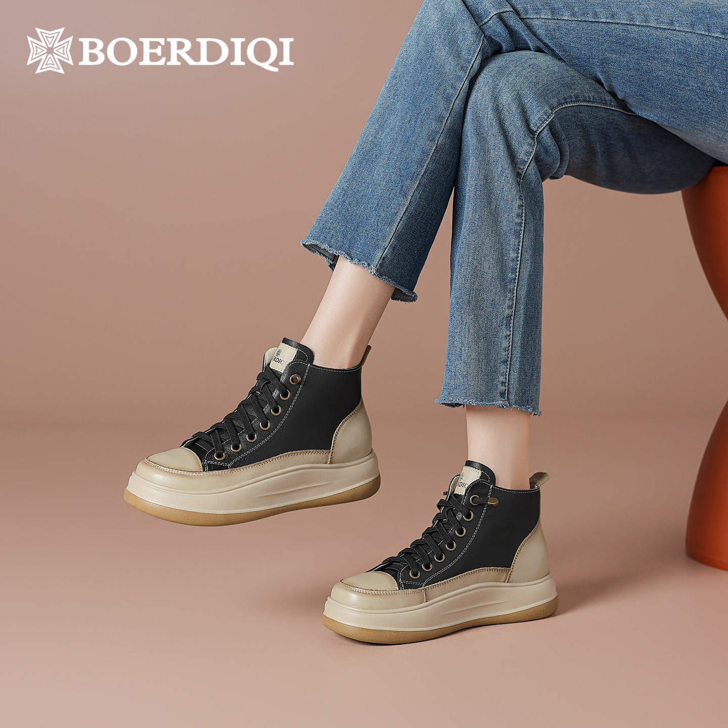 厚底增高免系带运动休闲鞋 新款 女真皮2025秋季 波尔谛奇复古高帮鞋