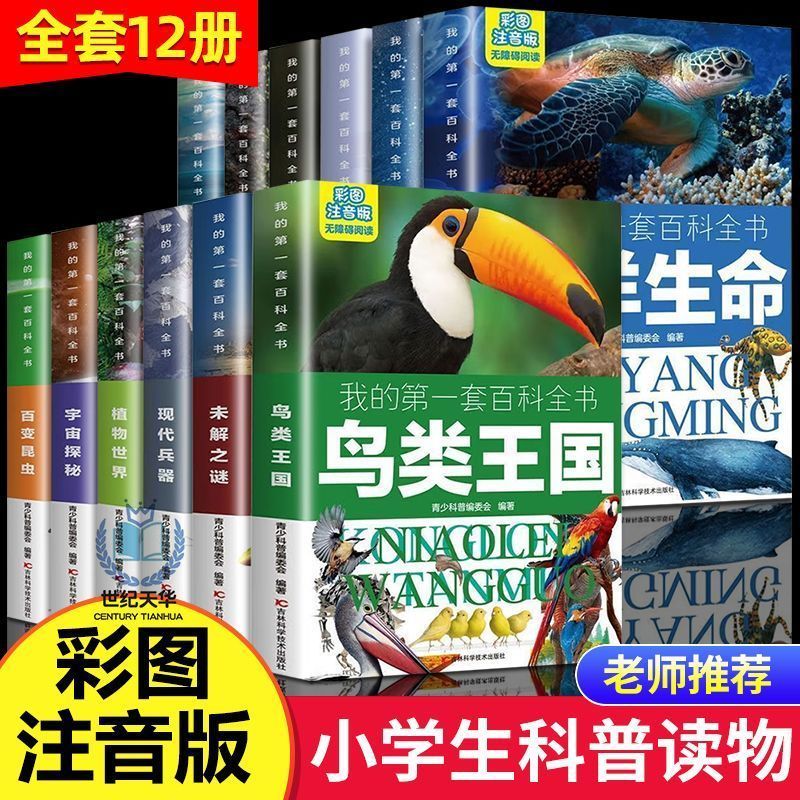 我 第一套百科全书全12册自然现象动物植物世界恐龙宇宙探秘行星地球未解之谜海洋生命鸟类王国海洋生命百变昆虫交通百科