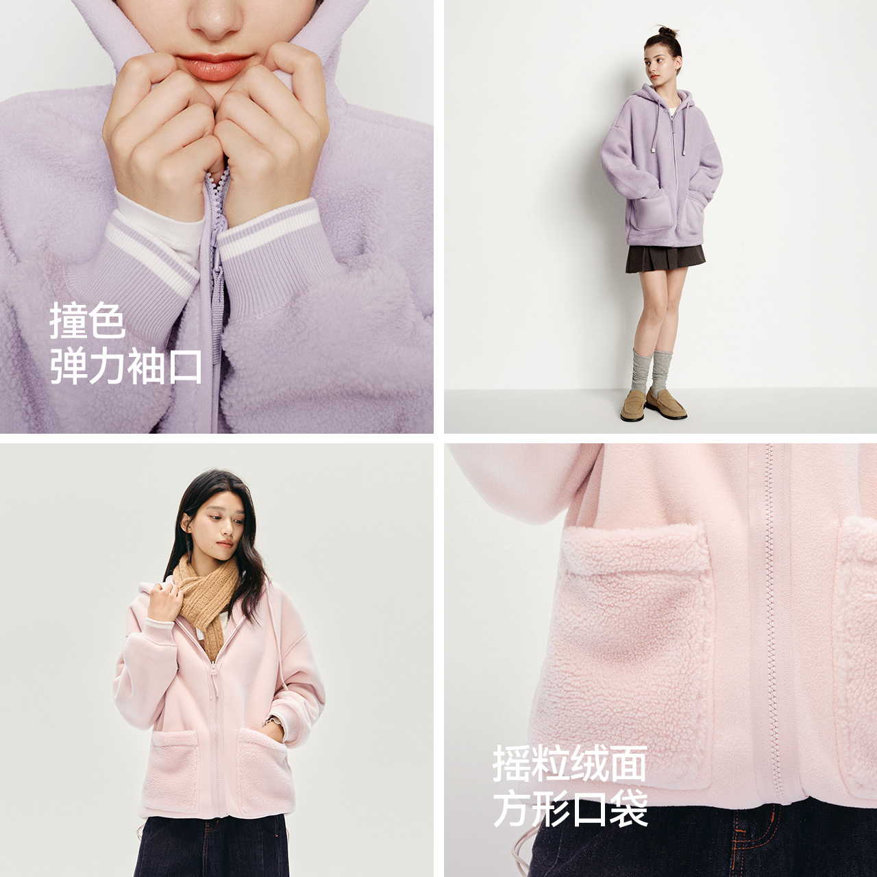 森马外套女仿羊羔毛摇粒绒双面穿宽松上衣2025冬新款 卫衣夹克女装