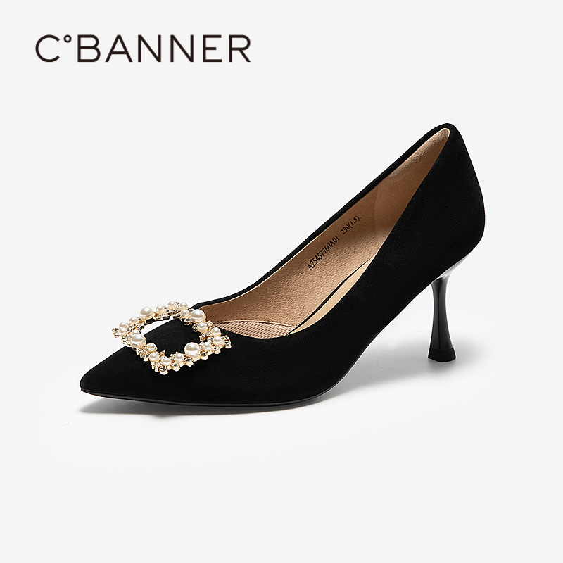 静音系列 羊皮扣饰法式 千百度细高跟鞋 新款 浅口单鞋 女2025秋季