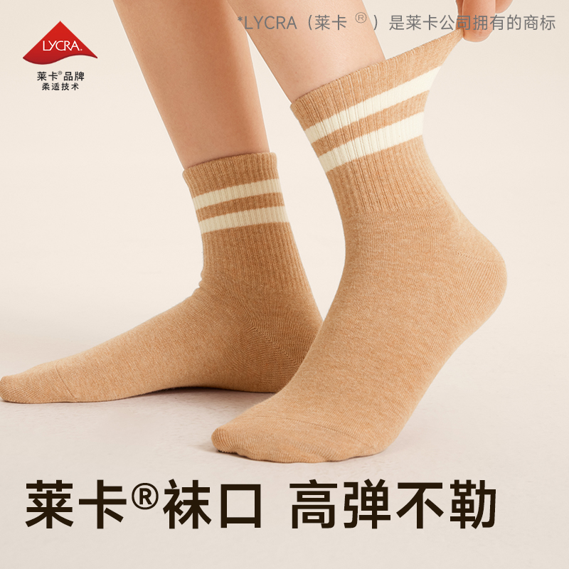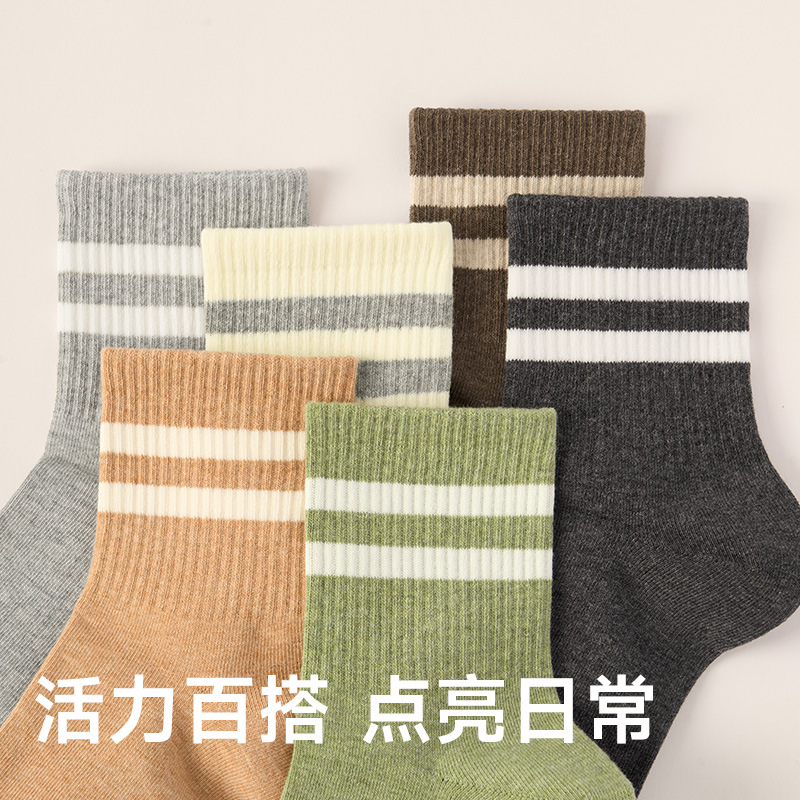 爆款 中筒抗菌防臭2025新款 运动女士无骨条纹袜 春秋季 纯棉袜子女款