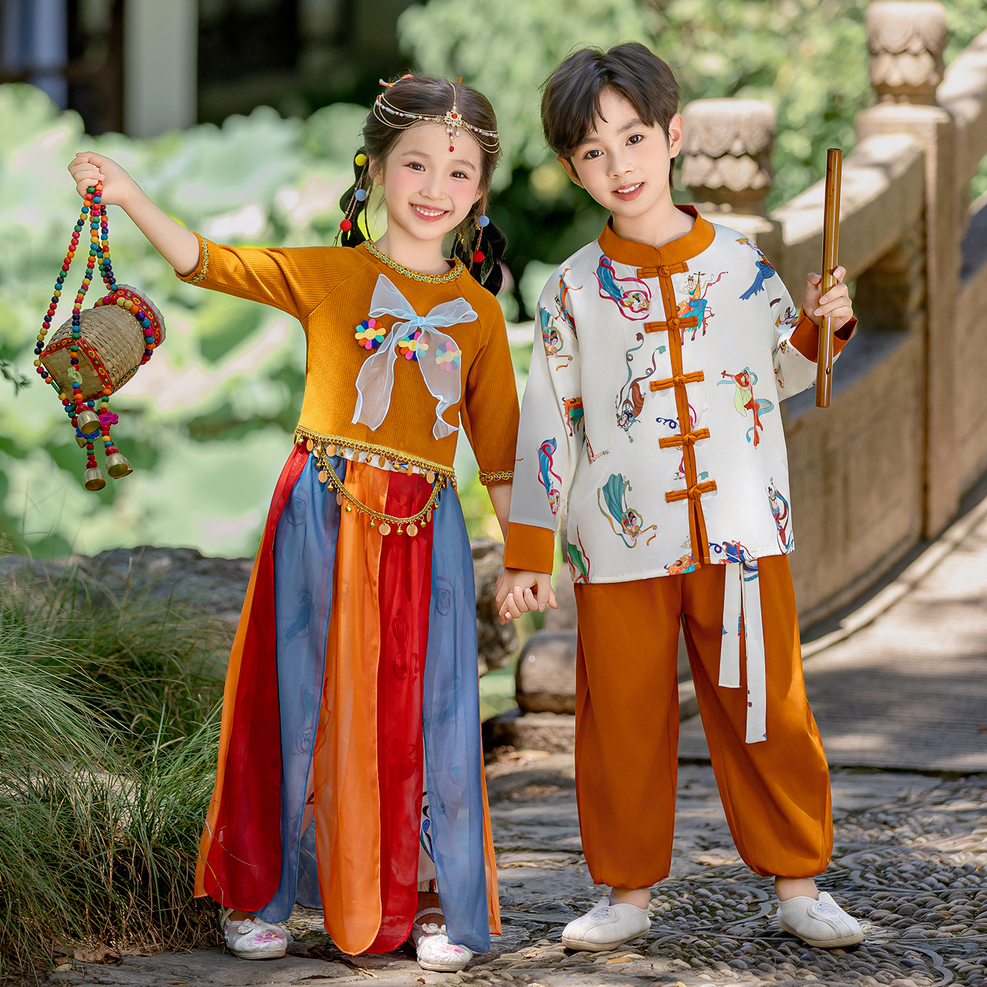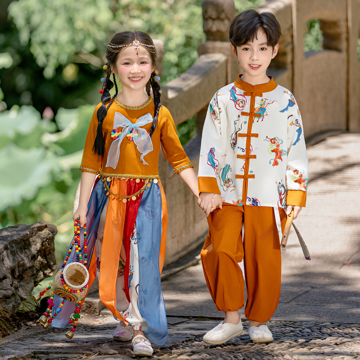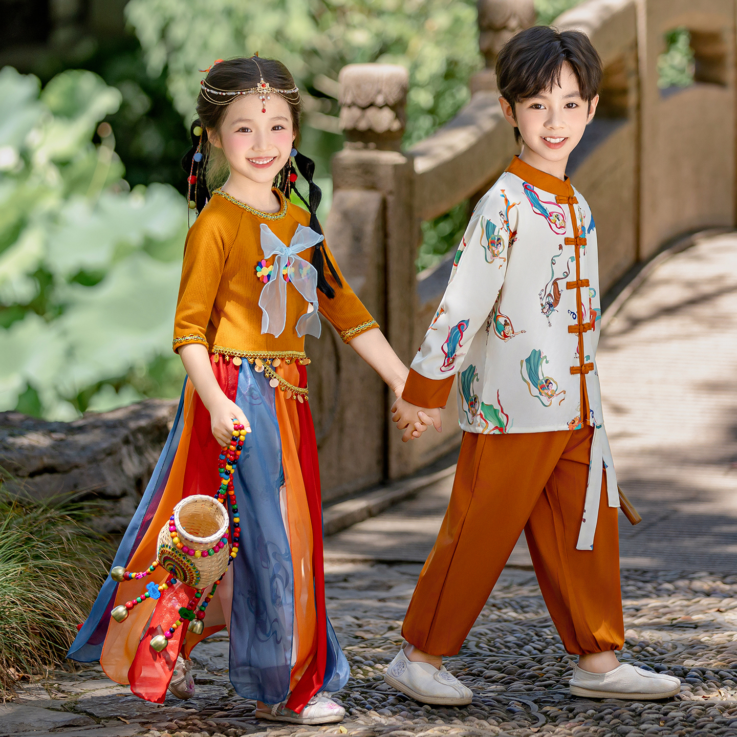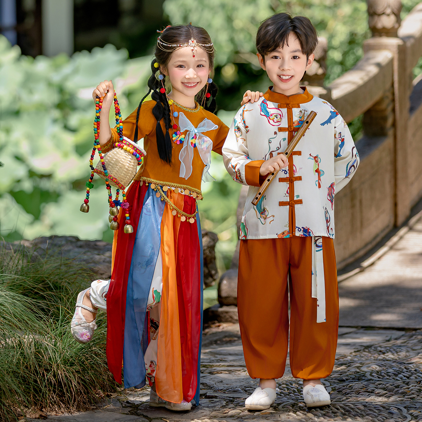 敦煌飞天女童超仙飘逸舞蹈演出服汉服男童古风民族风西域风情古典