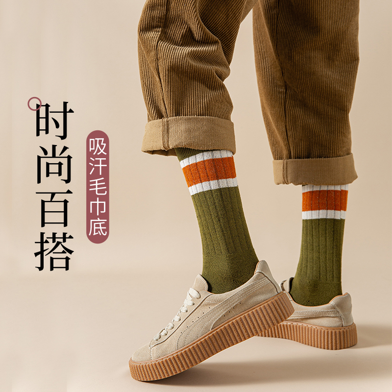 加绒加厚款 新款 保暖毛圈毛巾袜百搭长筒袜子 2025秋冬季 厚袜子男士