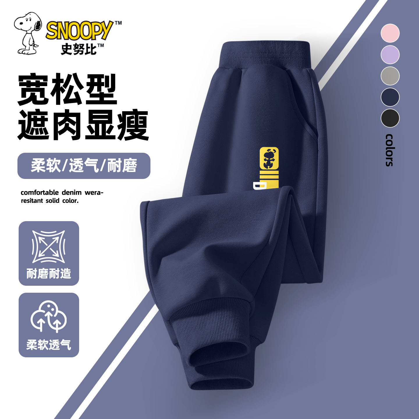 子男孩透气早秋长裤 史努比男童运动裤 2025酷潮儿童黑色裤 新款 秋季