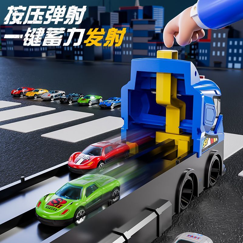 折叠变形弹射轨道卡车收纳货柜大卡车合金小汽车儿童男孩礼物玩具