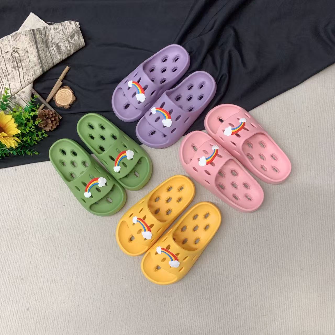 2025新款 居家浴室不积水镂空底室内拖彩虹男女孩亲子拖 儿童凉拖鞋