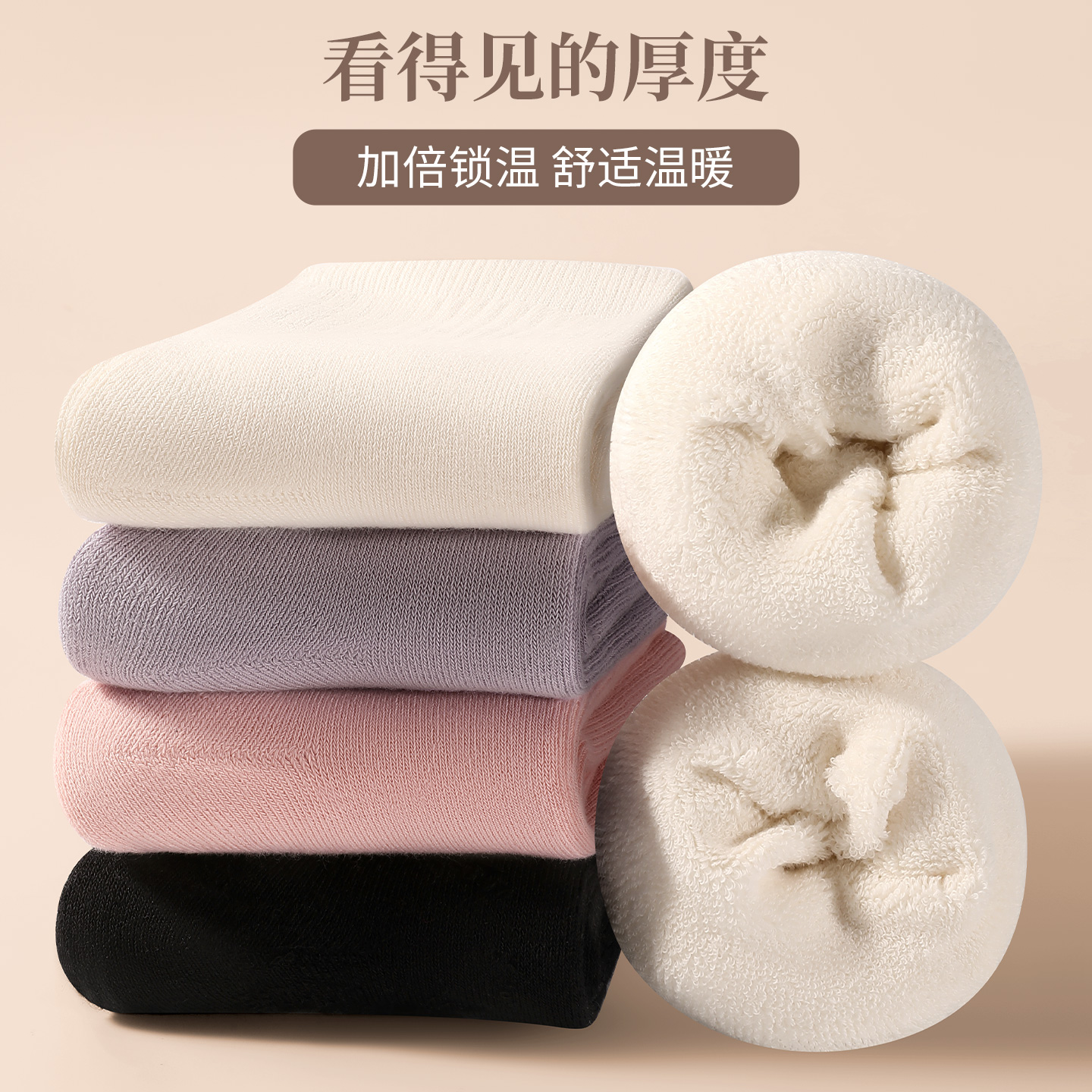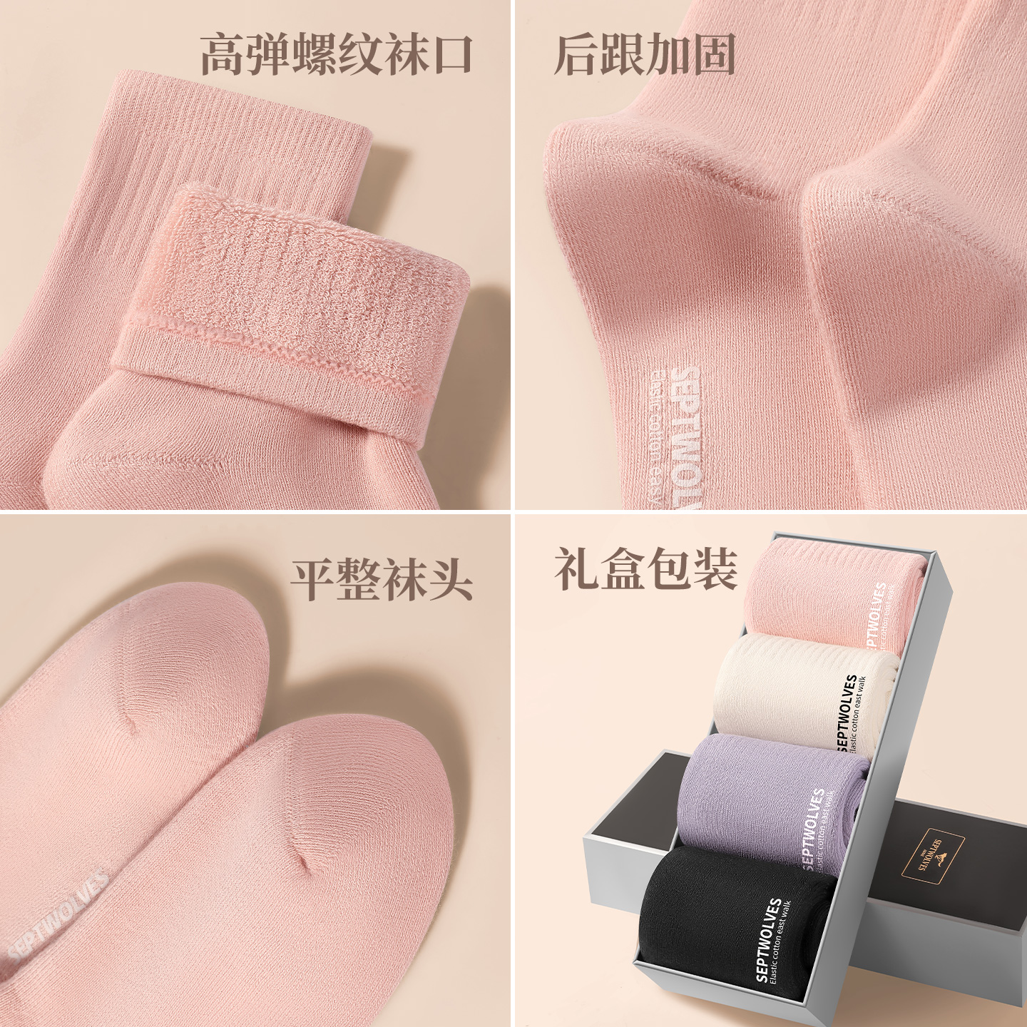 七匹狼毛圈袜子女士保暖棉袜中筒女袜加厚款 成人居家睡觉长袜冬季