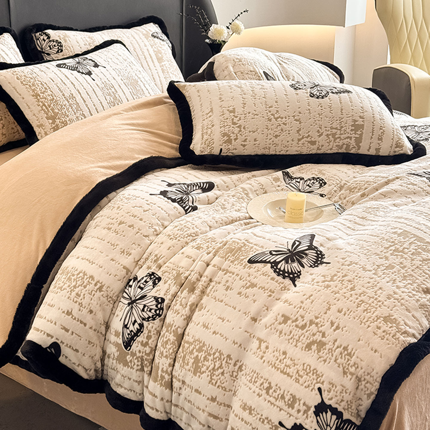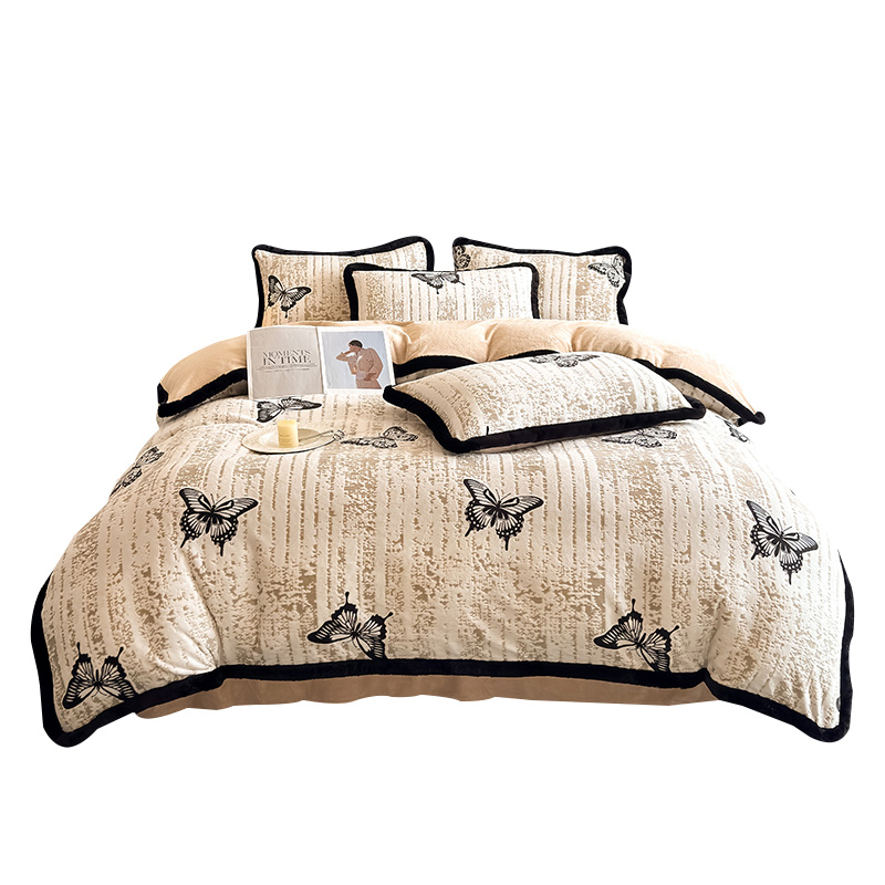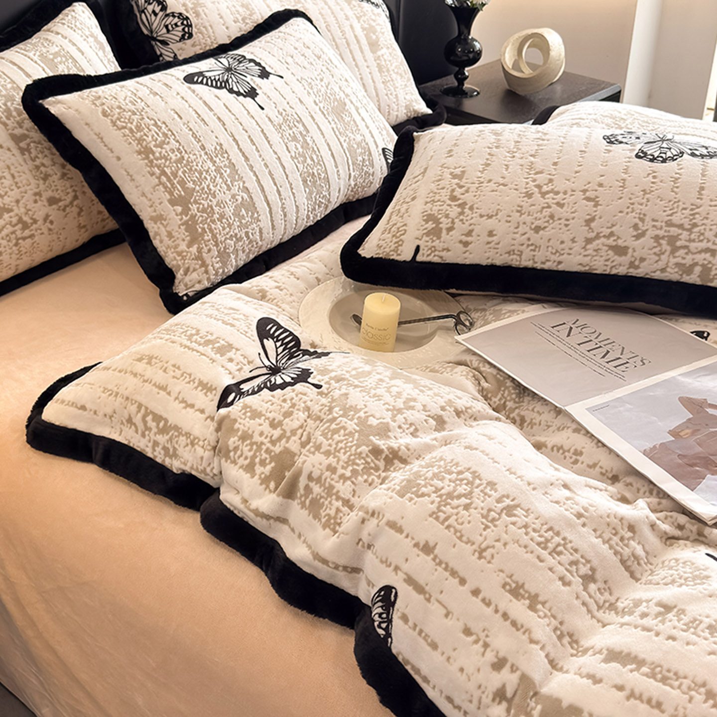 2025新款 A类兔毛花边雕花牛奶绒四件套加厚珊瑚绒被套床单三件套