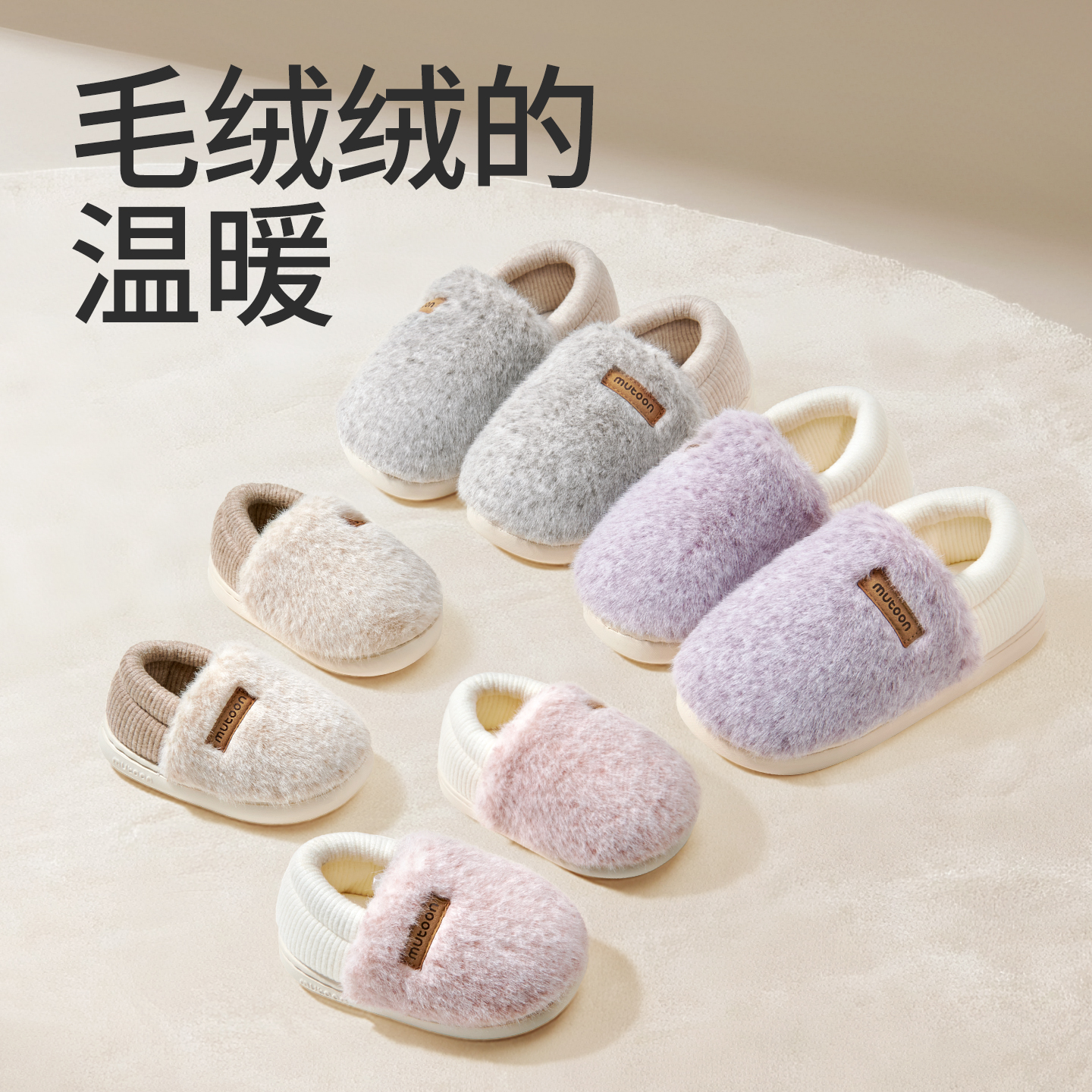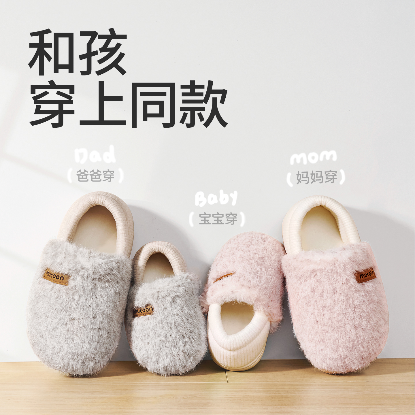 室内家居防滑居家用加绒毛毛亲子棉拖鞋 新款 2025冬季 牧童宝宝拖鞋