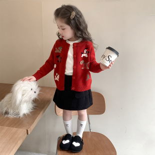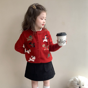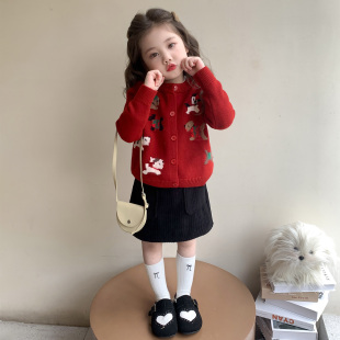 灰色圆领休闲针织衫 飞鸟和新酒刺绣时尚 新款 女2025秋季 毛衣开衫