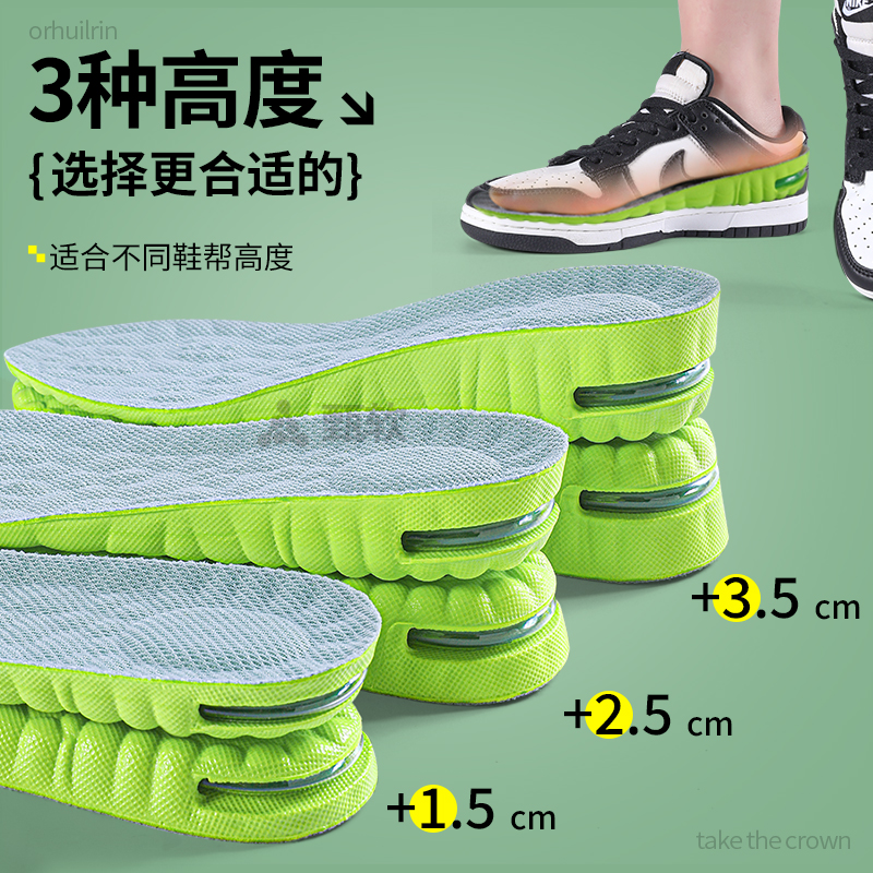 艾草增高鞋 隐形内增高吸汗防臭女运动减震增高垫高弹后跟 垫男士