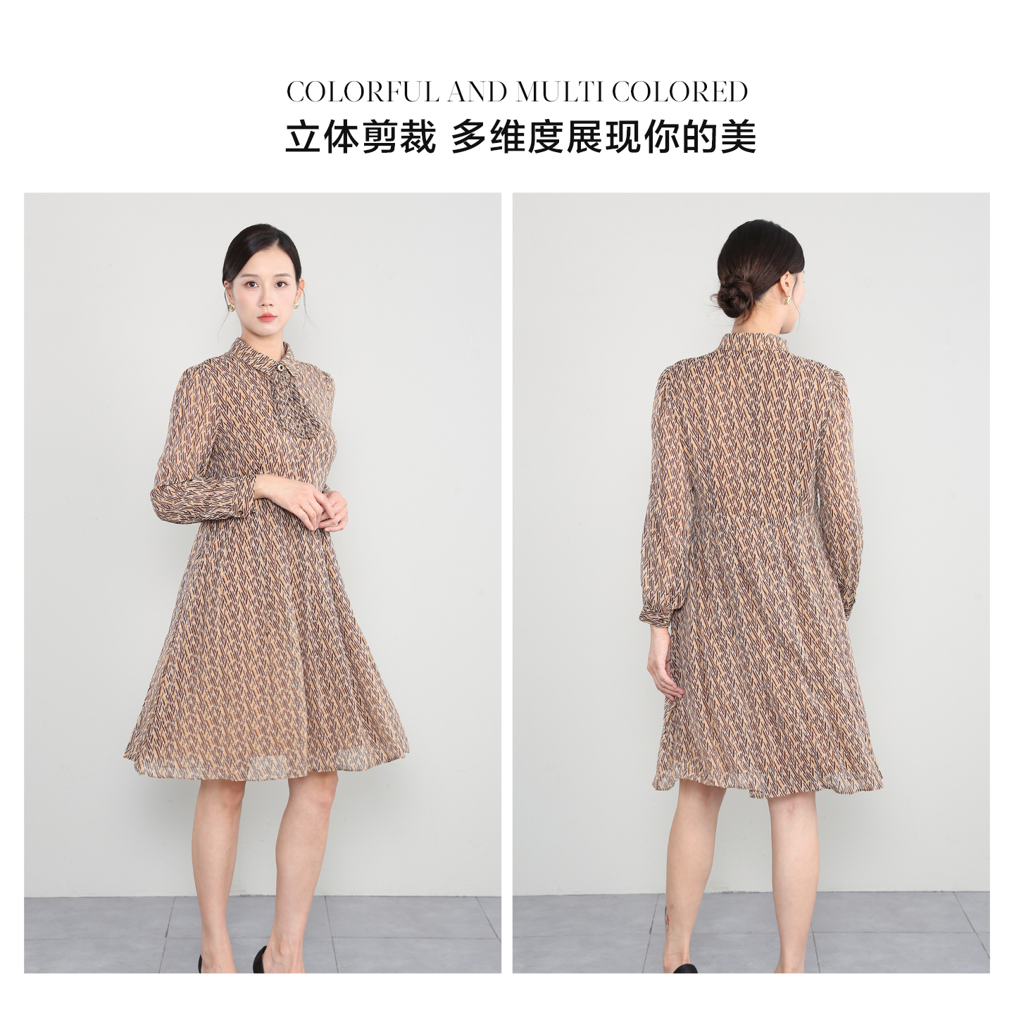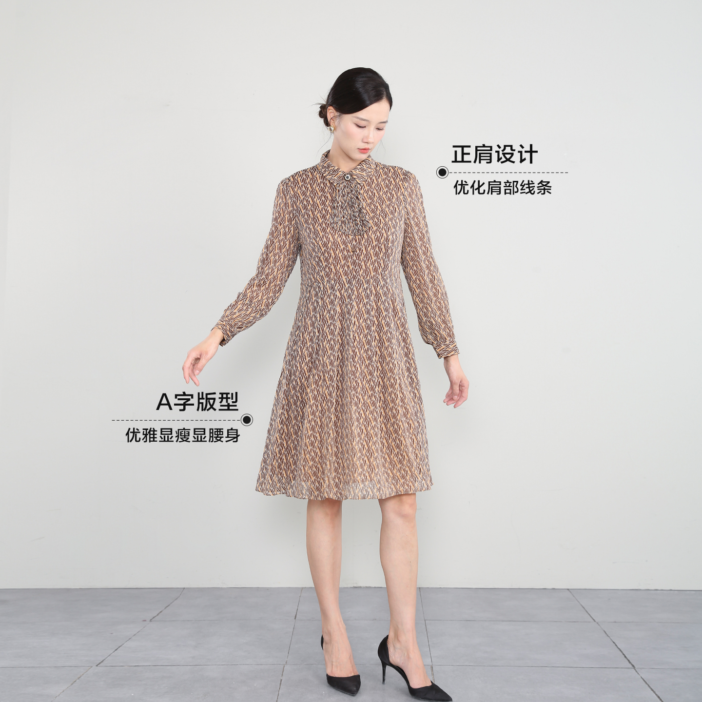 中长款 春百褶裙2025夏秋新款 A字裙长袖 气质修身 打底连衣裙 淑女装