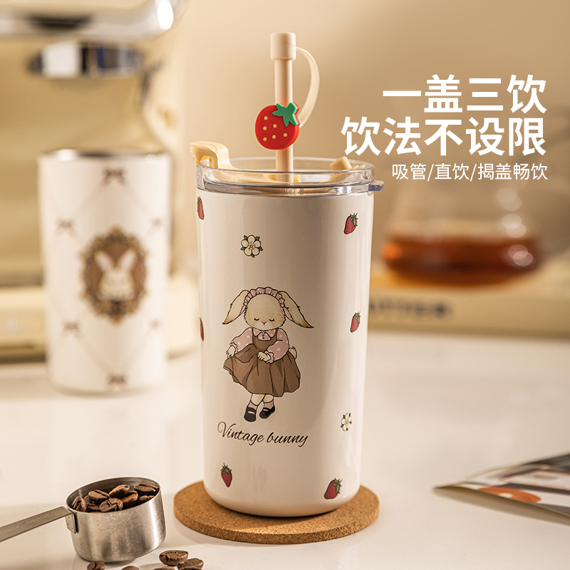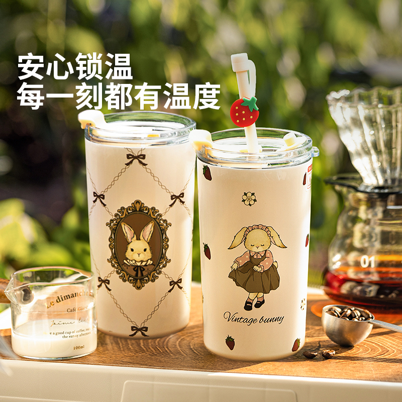 摩登主妇赫拉兔咖啡保温杯女生2025新款 水杯生日礼物便携吸管杯子