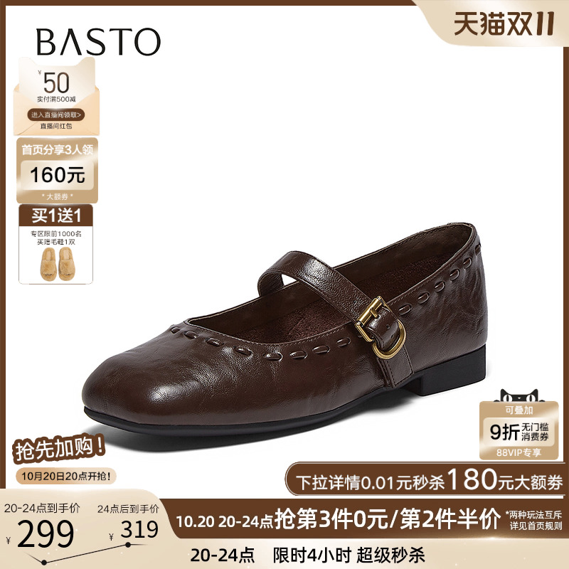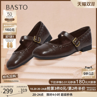 复古通勤方头女单鞋 百思图2025秋季 小皮鞋 玛丽珍鞋 F0111AQ6 新款