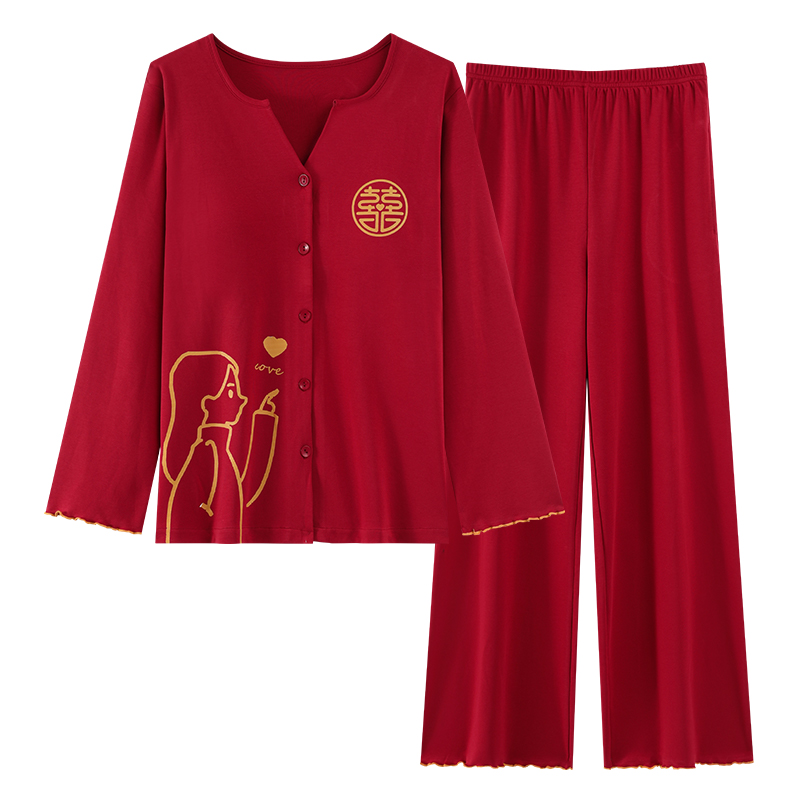 套装 纯棉结婚新婚喜庆家居服男士 25新款 猫人红色情侣睡衣女春秋季