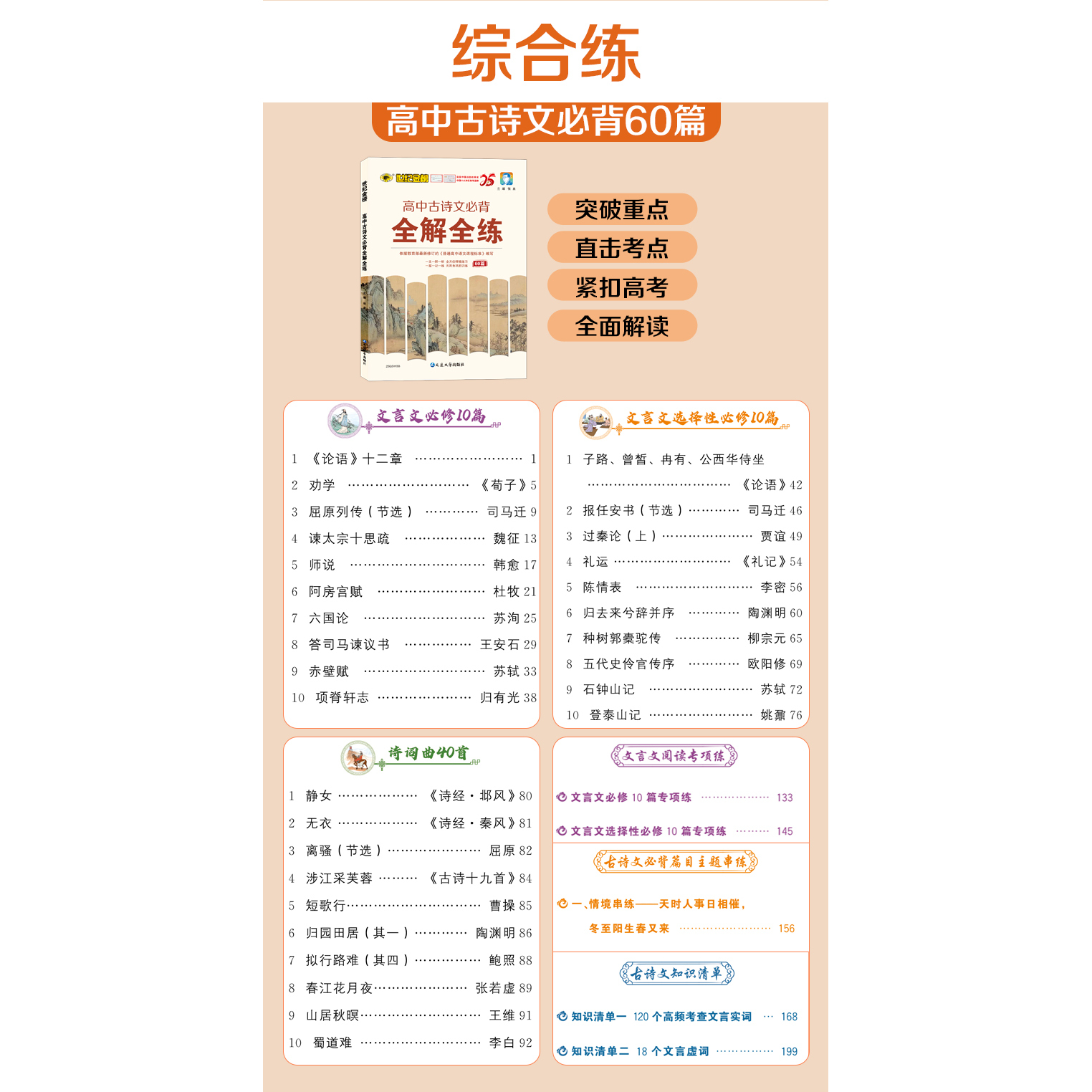 世纪金榜25版 全国通用新高考新教材文言实词虚词古文翻译练习题sjjb 高中语文专项古诗文必背60篇全解全练高一高二高三高考版