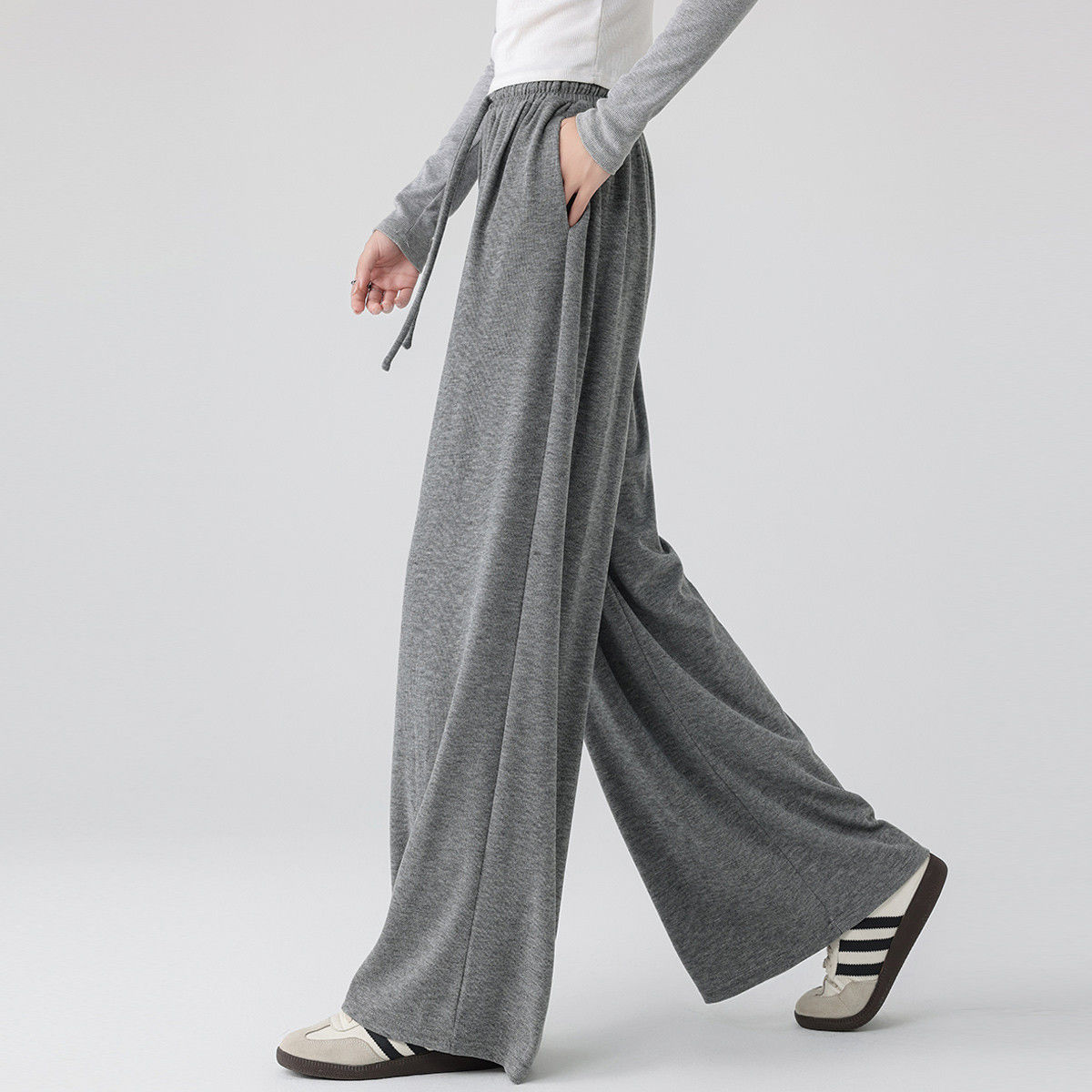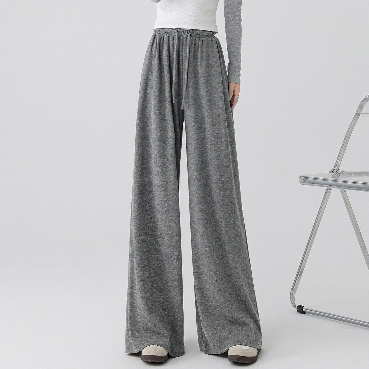 高级宽松bf慵懒垂感直筒加绒休闲阔腿裤 2025新款 子女春秋季 糯米裤