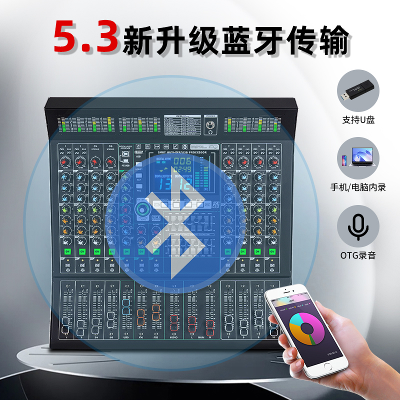 专业8 12路调音台双99种DSP效果USB蓝牙混响舞台演出婚庆家用k歌