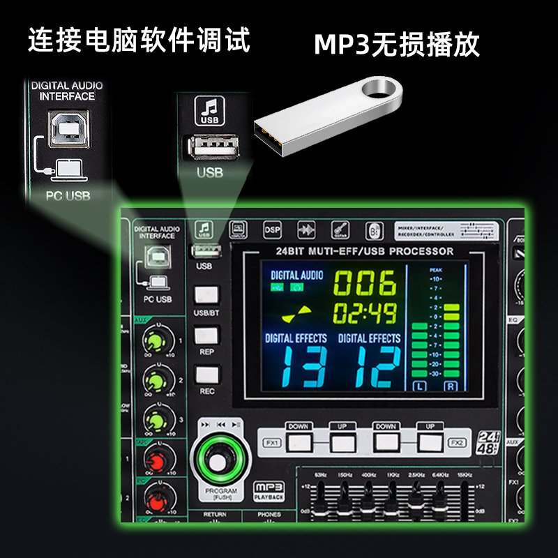 调音台专业带蓝牙USB均衡DSP混响效果家用舞台演出KTV 厂家直销