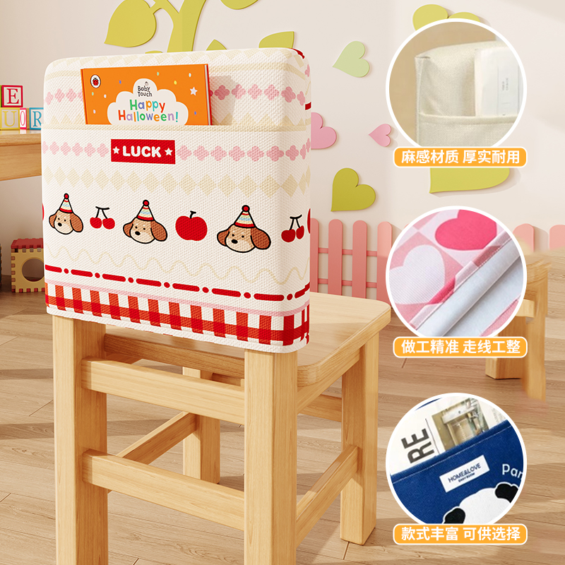 可爱卡通幼儿园椅背套图书收纳袋口袋布艺椅套罩办公室椅背收纳袋