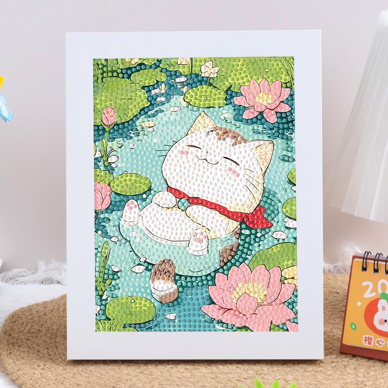 荷花熊猫钻石画手工diy材料包猫咪儿童砖石贴画送闺蜜生日礼物
