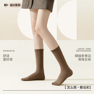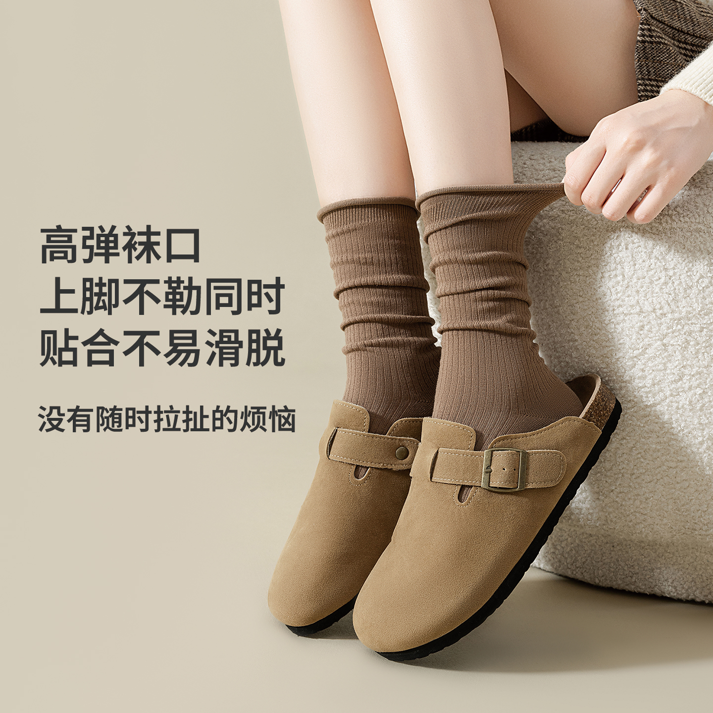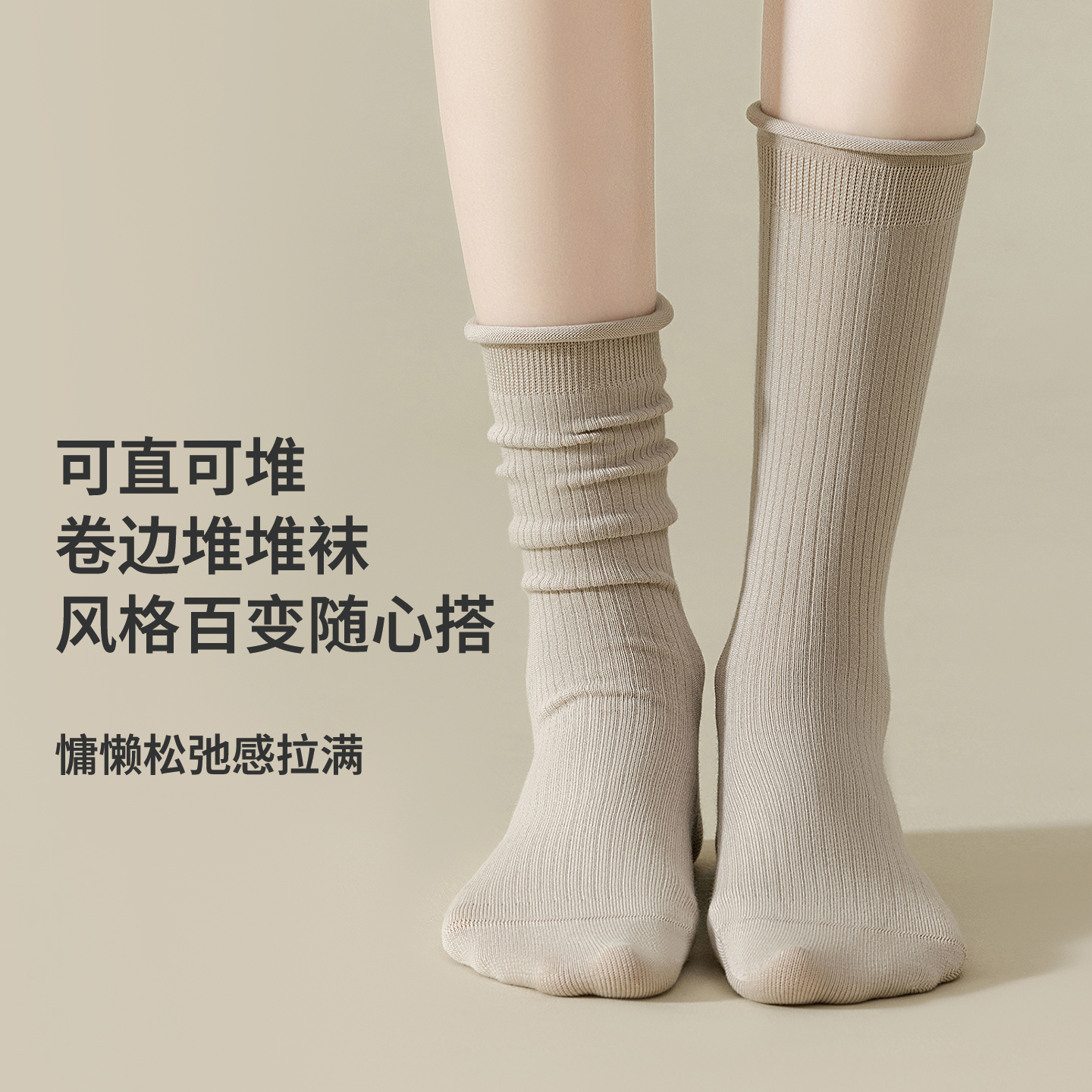 亲相见堆堆袜子女款 百搭月子无骨中筒袜 纯棉慵懒风抗菌防臭春秋款